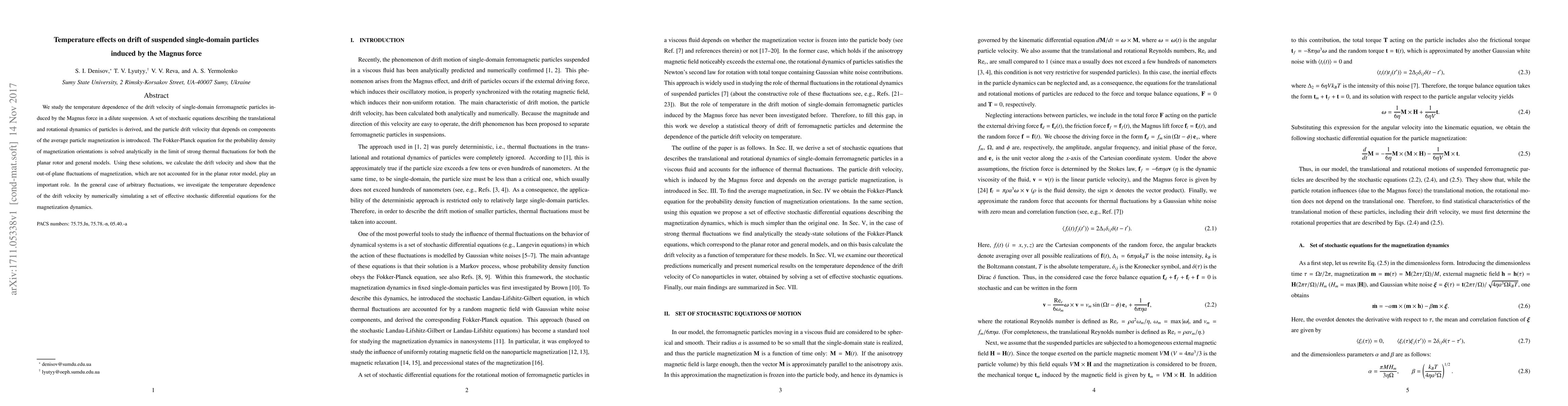 Research investigates how temperature affects the movement of tiny magnetic particles in a fluid, finding that higher temperatures increase particle drift velocity due to thermal fluctuations.