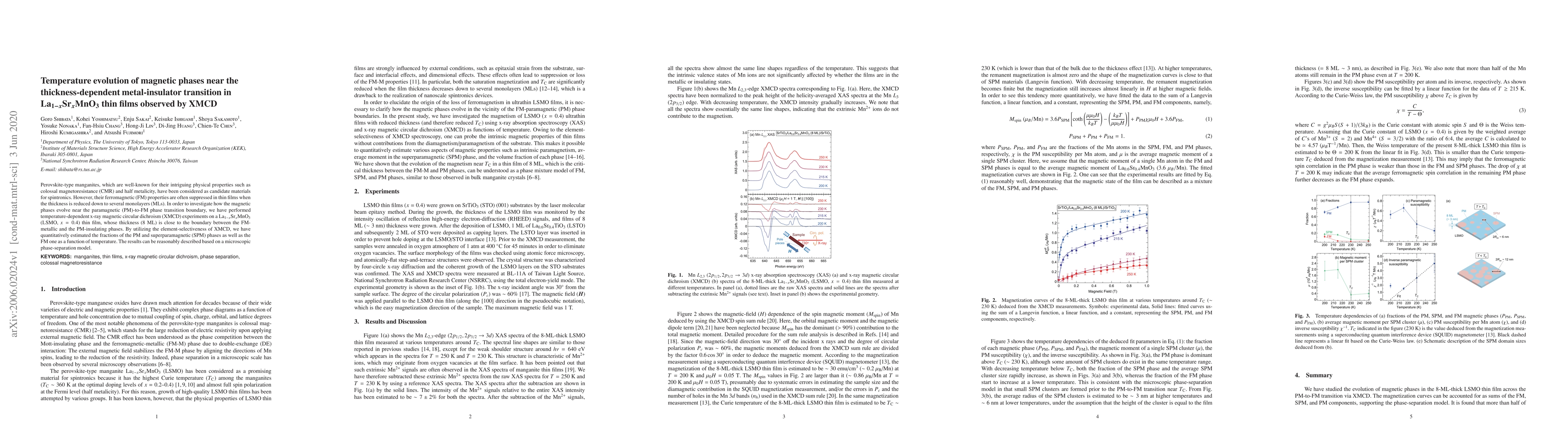This paper investigates the temperature-dependent magnetic phase evolution in La$_{1-x}$Sr$_x$MnO$_3$ (LSMO) thin films near the metal-insulator transition using XMCD. The study reveals the fractions of paramagnetic, superparamagnetic, and ferromagnetic phases, providing insights into the phase-separation model near the transition boundary.