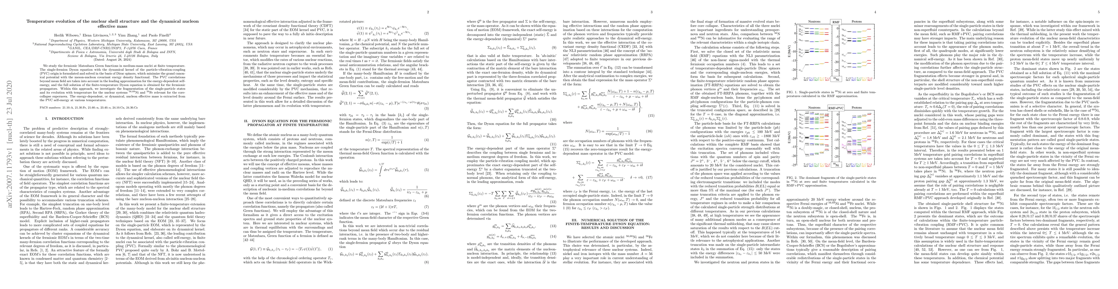 We study the fermionic Matsubara Green functions in medium-mass nuclei at finite temperature. The single-fermion Dyson equation with the dynamical kernel of the particle-vibration-coupling (PVC) origin is formulated and solved in the basis of Dirac spinors, which minimize the grand canonical potential with the meson-nucleon covariant energy density functional. The PVC correlations beyond mean field are taken into account in the leading approximation for the energy-dependent self-energy, and the full solution of the finite-temperature Dyson equation is obtained for the fermionic propagators. Within this approach, we investigate the fragmentation of the single-particle states and its evolution with temperature for the nuclear systems $^{56,68}$Ni and $^{56}$Fe relevant for the core-collapse supernova. The energy-dependent, or dynamical, nucleon effective mass is extracted from the PVC self-energy at various temperatures.