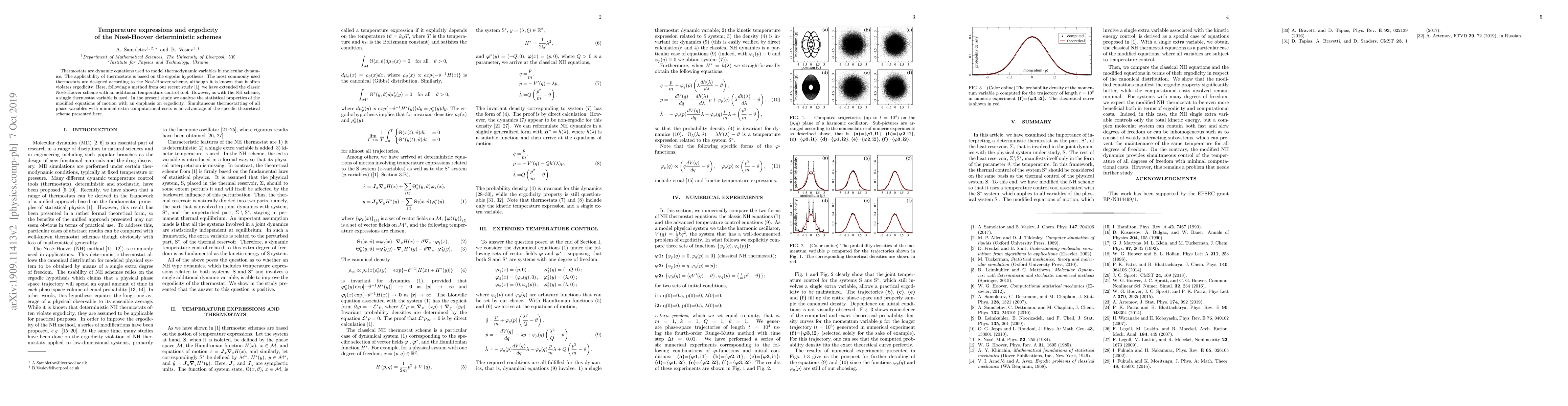 This paper extends the Nos\'e-Hoover thermostat to improve ergodicity while maintaining minimal computational costs. It analyzes the statistical properties of the modified equations, focusing on their ergodic behavior.