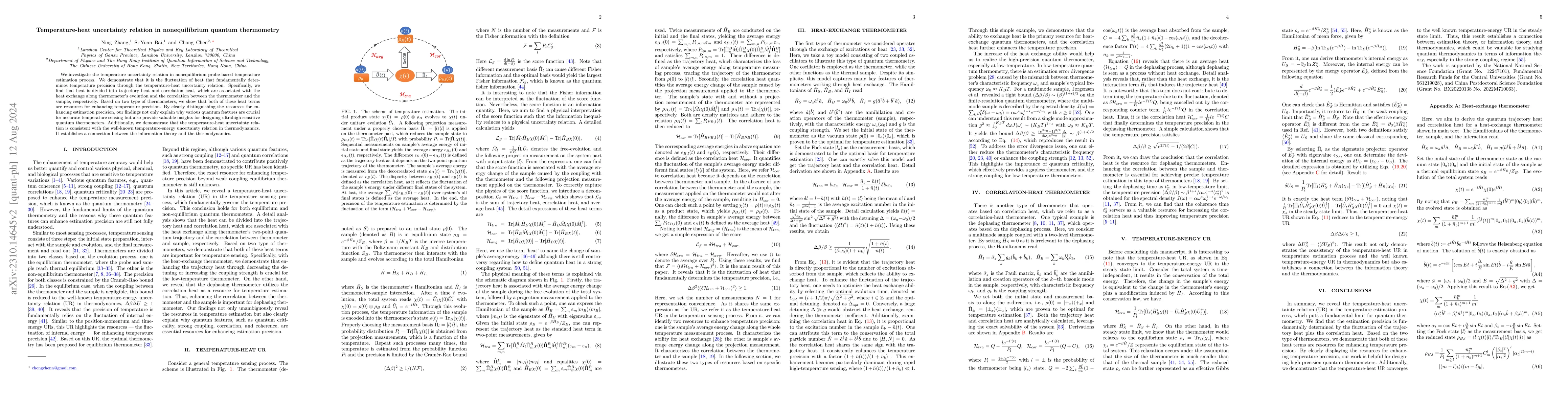 This paper explores the resource theory for temperature estimation, revealing that heat fluctuations, divided into trajectory heat and correlation heat, fundamentally determine temperature precision. It establishes a temperature-heat uncertainty relation consistent with thermodynamic principles, offering insights for designing ultra-sensitive quantum thermometers.