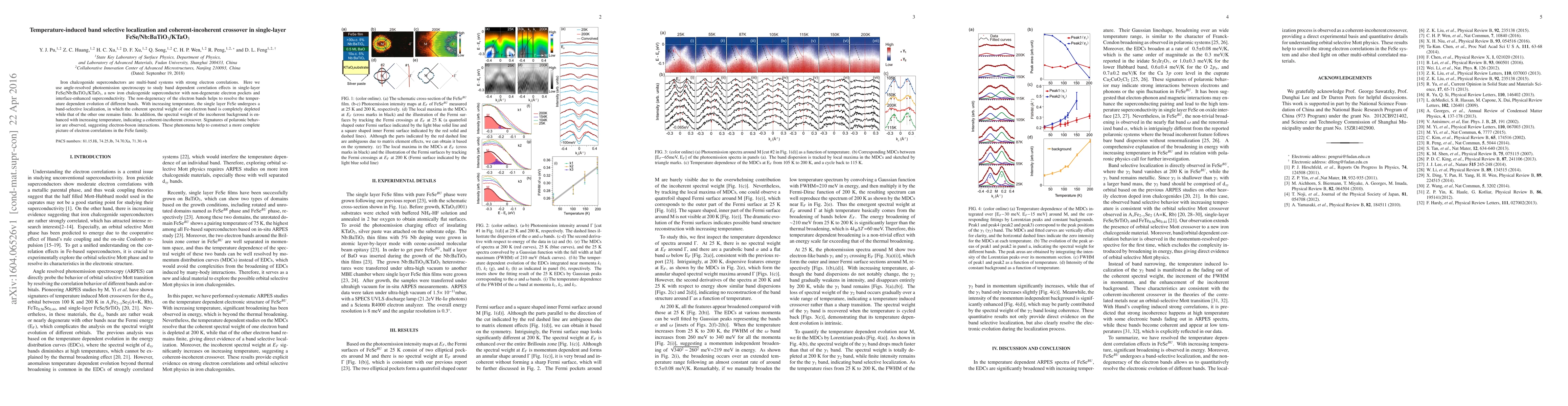 This study uses angle-resolved photoemission spectroscopy to investigate temperature-induced band selective localization and a coherent-incoherent crossover in single-layer FeSe/Nb:BaTiO3/KTaO3, revealing that with rising temperature, one electron band loses its coherent spectral weight while the other retains it, accompanied by enhanced incoherent background, indicative of polaronic behavior and electron-boson interactions.