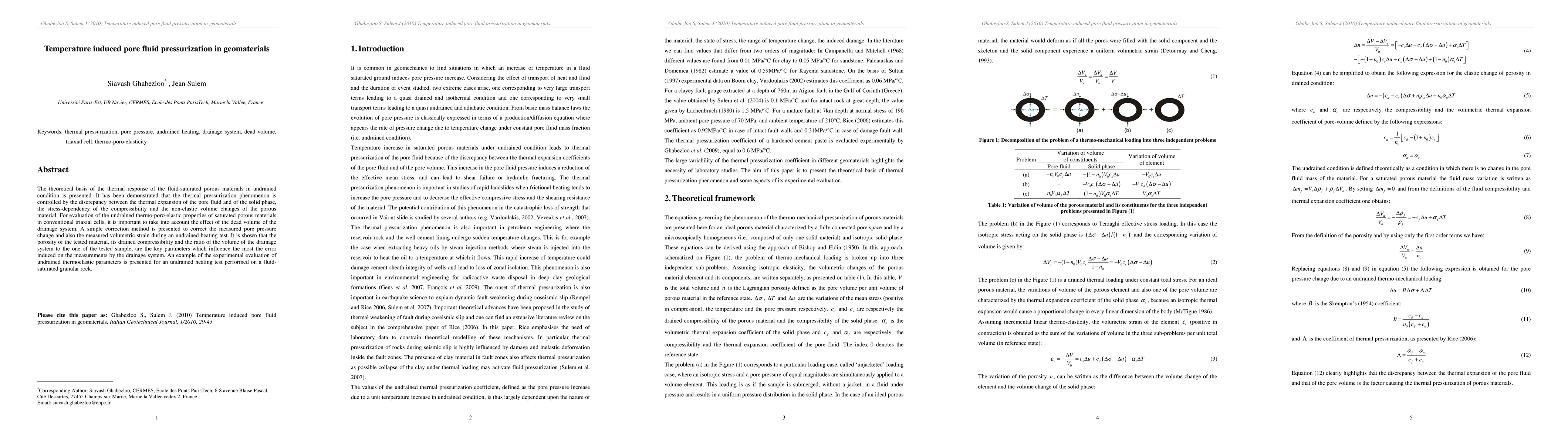 This paper presents a theoretical framework for understanding thermal pressurization in fluid-saturated porous materials under undrained conditions, emphasizing the role of thermal expansion discrepancies and stress-dependent compressibility. It introduces a correction method to account for errors in measurements due to the drainage system's dead volume, highlighting the influence of porosity, drained compressibility, and drainage system volume ratio.