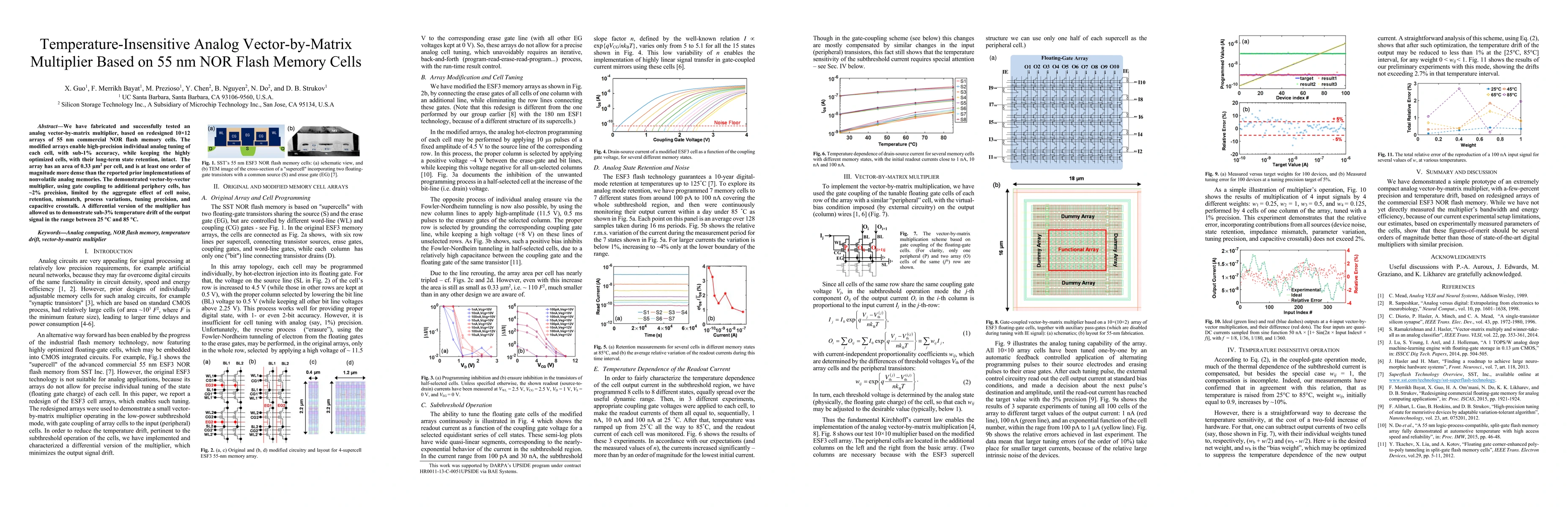 We have fabricated and successfully tested an analog vector-by-matrix multiplier, based on redesigned 10x12 arrays of 55 nm commercial NOR flash memory cells. The modified arrays enable high-precision individual analog tuning of each cell, with sub-1% accuracy, while keeping the highly optimized cells, with their long-term state retention, intact. The array has an area of 0.33 um^2 per cell, and is at least one order of magnitude more dense than the reported prior implementations of nonvolatile analog memories. The demonstrated vector-by-vector multiplier, using gate coupling to additional periphery cells, has ~2% precision, limited by the aggregate effect of cell noise, retention, mismatch, process variations, tuning precision, and capacitive crosstalk. A differential version of the multiplier has allowed us to demonstrate sub-3% temperature drift of the output signal in the range between 25C and 85C.