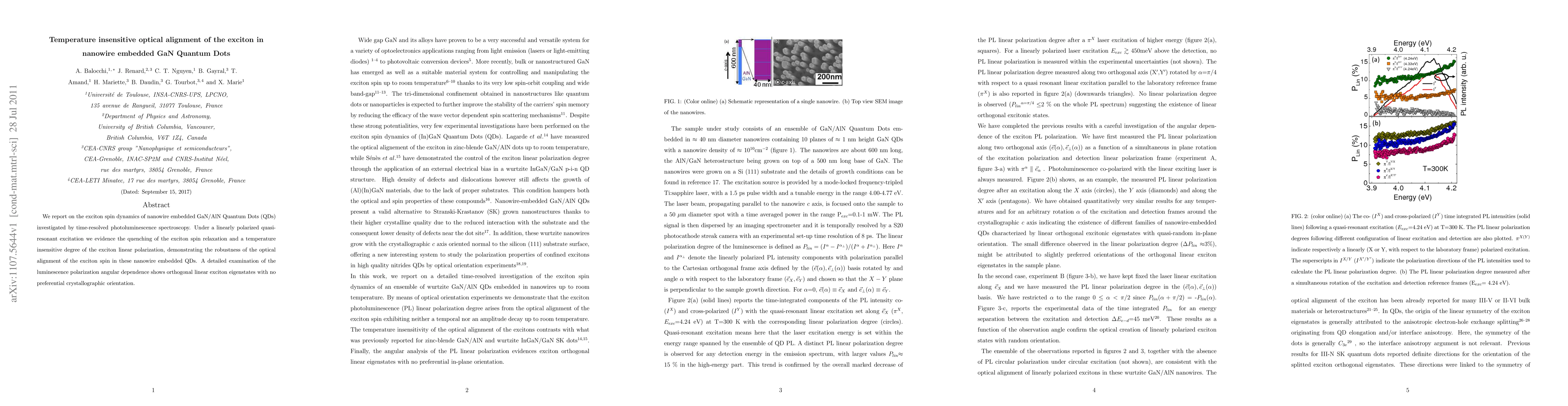 This study investigates exciton spin dynamics in nanowire embedded GaN/AlN Quantum Dots, revealing temperature-independent exciton linear polarization and orthogonal exciton eigenstates via time-resolved photoluminescence spectroscopy. The results show robust optical alignment of exciton spin in these nanostructures.