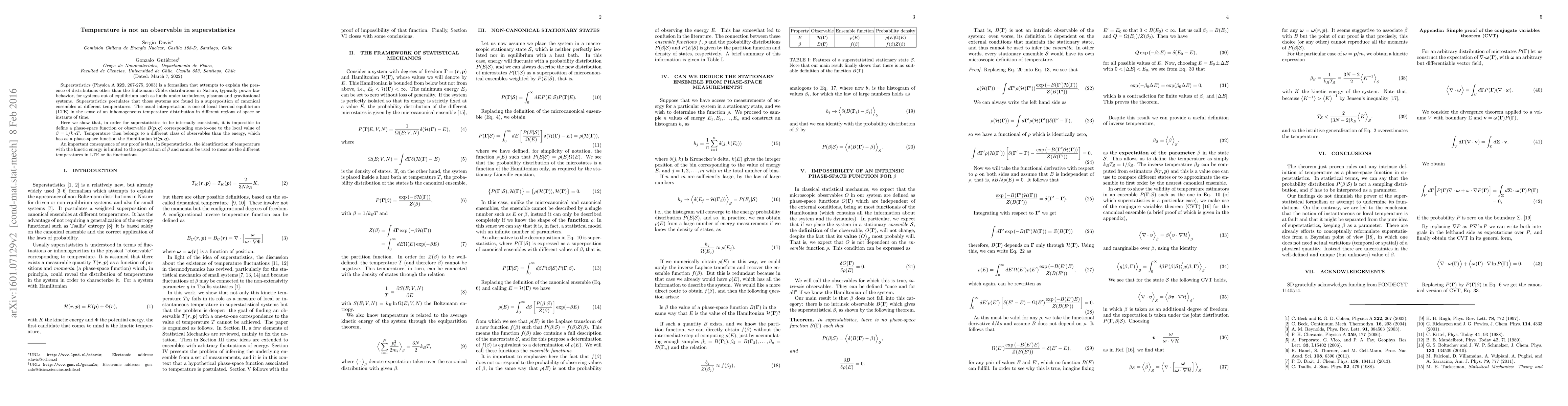 Research shows that temperature is not a directly observable in superstatistics, a formalism explaining power-law behavior in out-of-equilibrium systems, due to its non-uniqueness and limitations in phase-space functions.