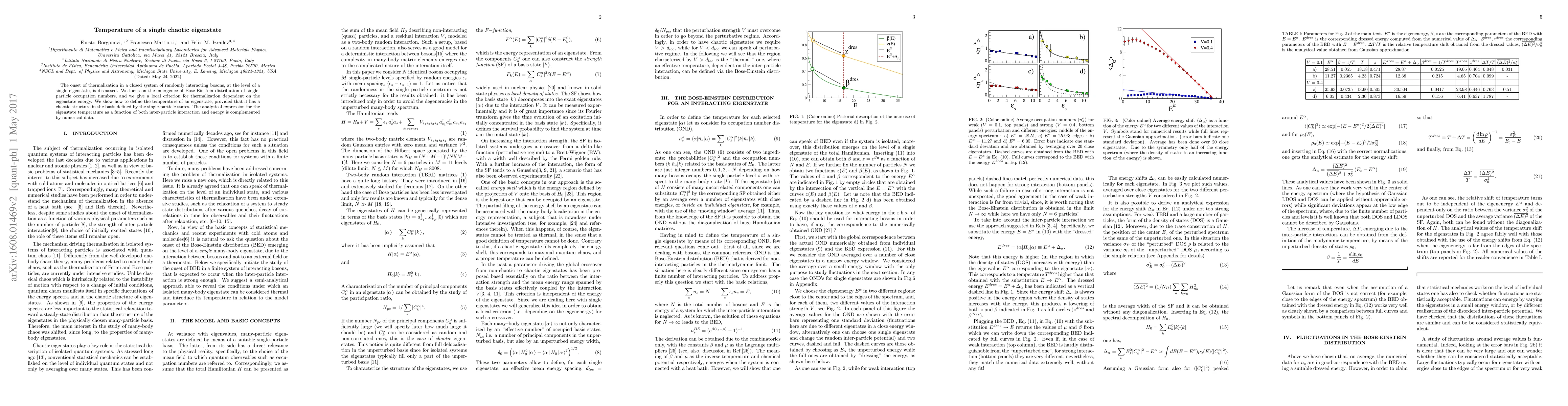 This paper explores the thermalization of a closed finite system of randomly interacting bosons at the level of a single chaotic eigenstate, focusing on the emergence of the Bose-Einstein distribution. It defines the temperature of such an eigenstate and provides both analytical expressions and numerical data to support the findings.