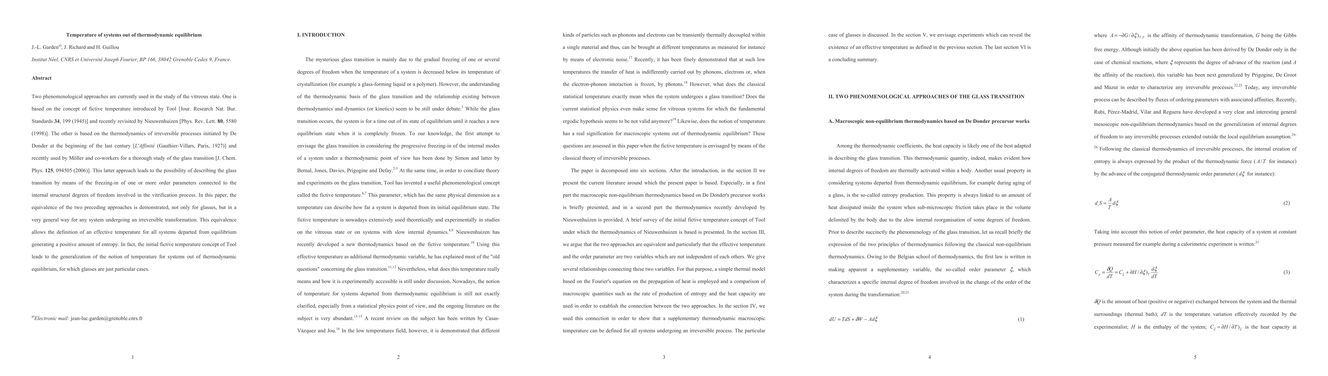 Researchers demonstrate the equivalence of two approaches to studying glassy systems, showing that a temperature concept can be applied to systems out of thermodynamic equilibrium, allowing for a unified understanding of glass transition and other irreversible transformations.