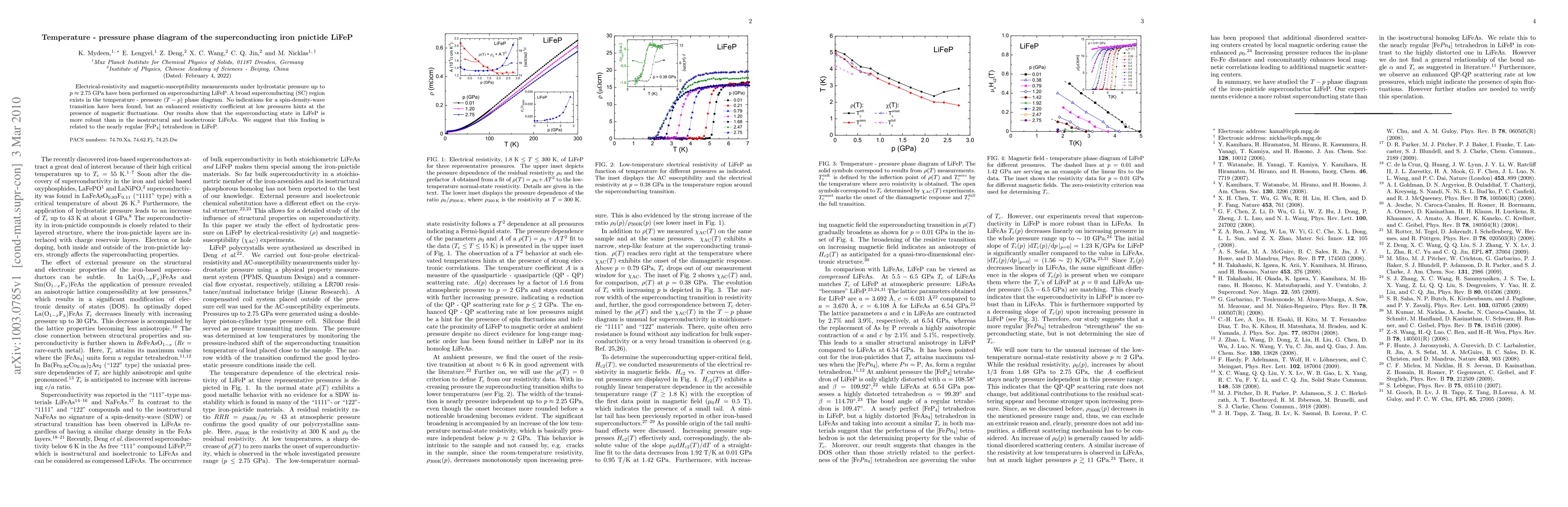 This study investigates the superconducting properties of LiFeP under pressure, revealing a broad superconducting region in the T-p phase diagram. Unlike LiFeAs, LiFeP exhibits greater robustness against pressure, potentially due to its nearly regular [FeP_4] tetrahedron structure, with no evidence of a spin-density-wave transition but indications of magnetic fluctuations.