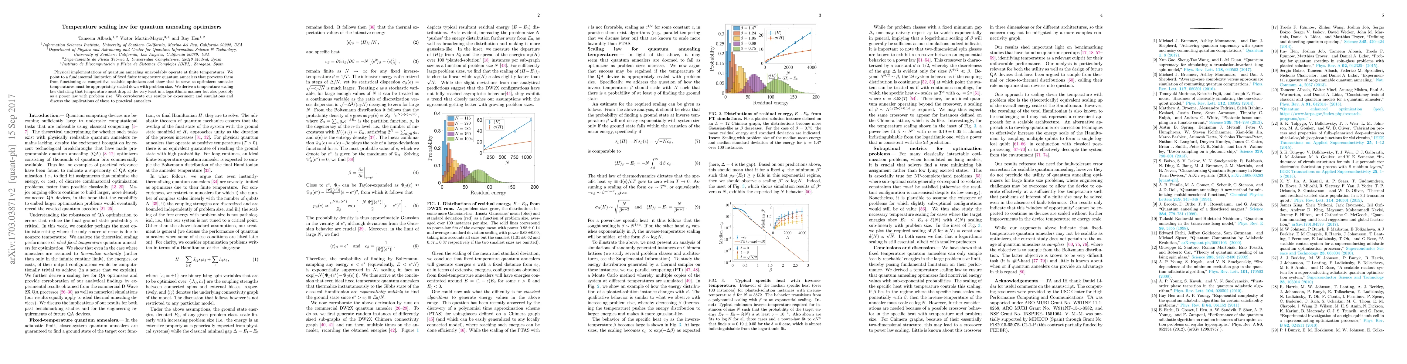 This paper identifies a fundamental limitation in fixed finite temperature quantum annealers, demonstrating that their scalability as optimizers is hindered. It proposes a temperature scaling law, suggesting that annealer temperatures must decrease logarithmically or as a power law with problem size to remain effective.