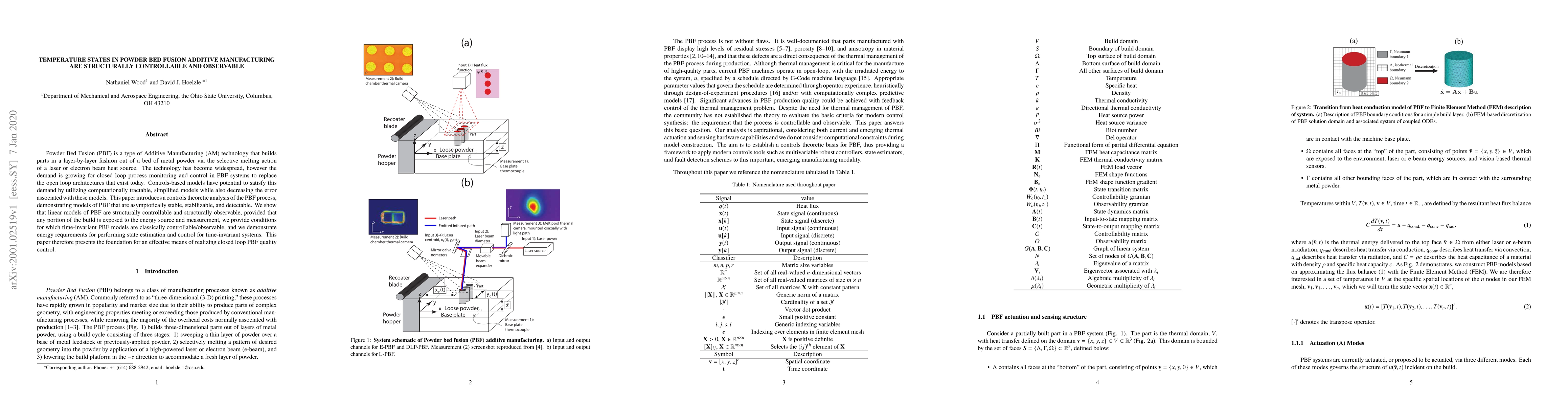 This paper presents a controls theoretic analysis of Powder Bed Fusion (PBF) additive manufacturing, demonstrating that linear models of PBF are structurally controllable and observable, thus laying the foundation for closed-loop process monitoring and control to improve manufacturing quality.