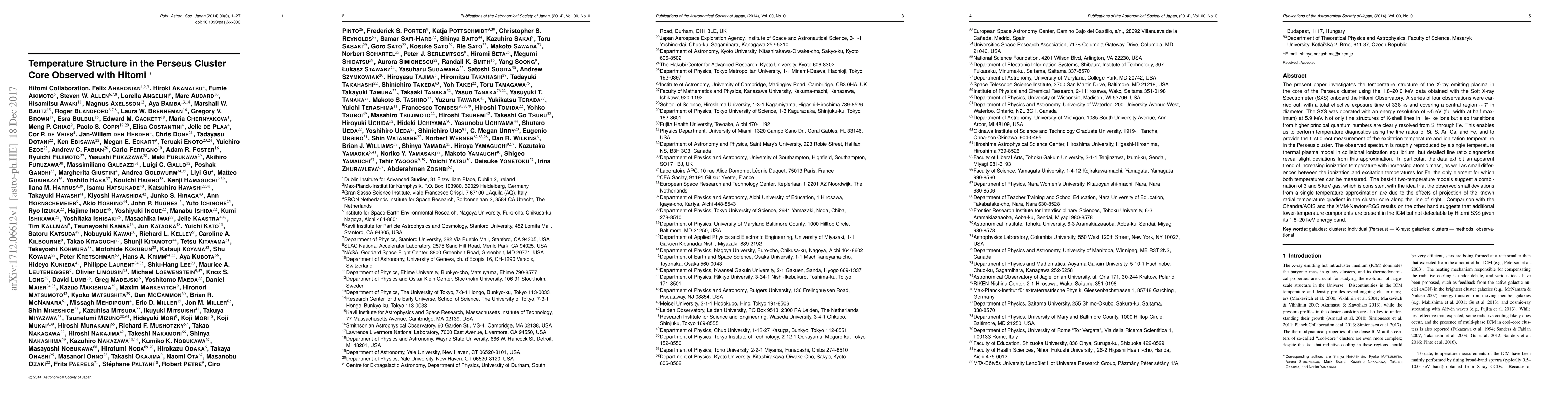 This paper uses Hitomi Observatory's Soft X-ray Spectrometer to analyze the temperature structure of the Perseus cluster core, revealing slight deviations from a single-temperature model and suggesting a two-temperature gas combination of 3 and 5 keV. The findings indicate the presence of additional lower-temperature components not detectable within Hitomi's energy range.