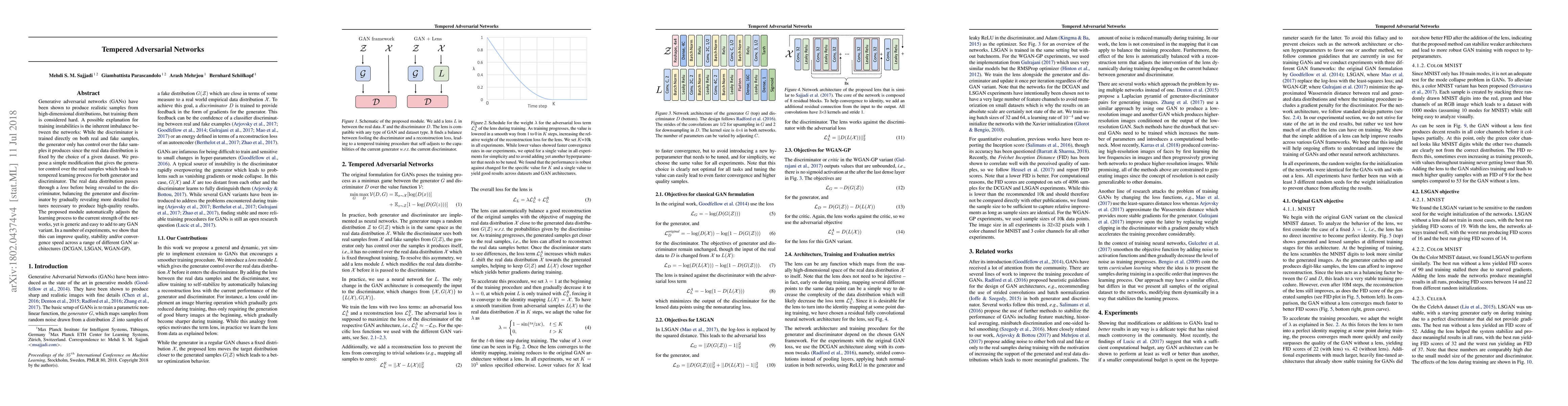 Generative adversarial networks (GANs) have been shown to produce realistic samples from high-dimensional distributions, but training them is considered hard. A possible explanation for training instabilities is the inherent imbalance between the networks: While the discriminator is trained directly on both real and fake samples, the generator only has control over the fake samples it produces since the real data distribution is fixed by the choice of a given dataset. We propose a simple modification that gives the generator control over the real samples which leads to a tempered learning process for both generator and discriminator. The real data distribution passes through a lens before being revealed to the discriminator, balancing the generator and discriminator by gradually revealing more detailed features necessary to produce high-quality results. The proposed module automatically adjusts the learning process to the current strength of the networks, yet is generic and easy to add to any GAN variant. In a number of experiments, we show that this can improve quality, stability and/or convergence speed across a range of different GAN architectures (DCGAN, LSGAN, WGAN-GP).