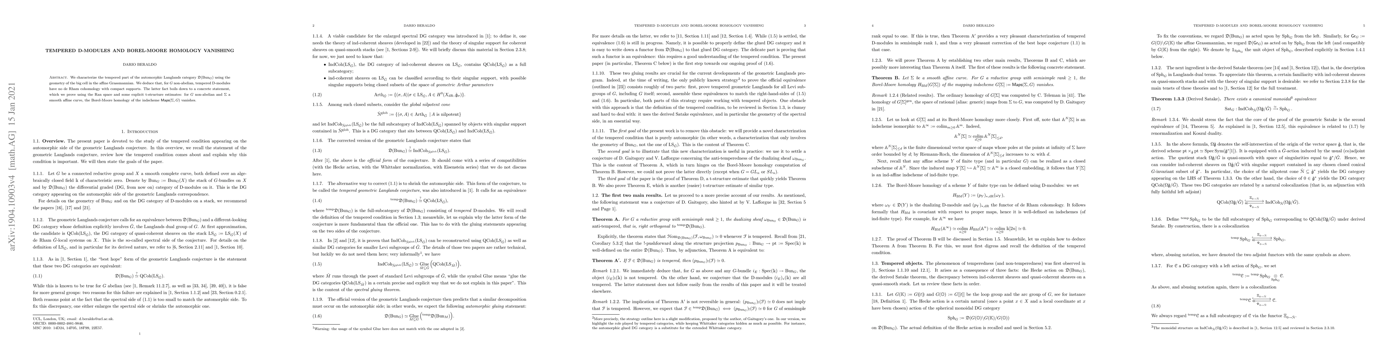 We characterize the tempered part of the automorphic Langlands category D-mod(Bun_G) using the geometry of the big cell in the affine Grassmannian. We deduce that, for $G$ non-abelian, tempered D-modules have no de Rham cohomology with compact supports. The latter fact boils down to a concrete statement, which we prove using the Ran space and some explicit t-structure estimates: for $G$ non-abelian and $\Sigma$ a smooth affine curve, the Borel-Moore homology of the indscheme $Maps(\Sigma,G)$ vanishes.