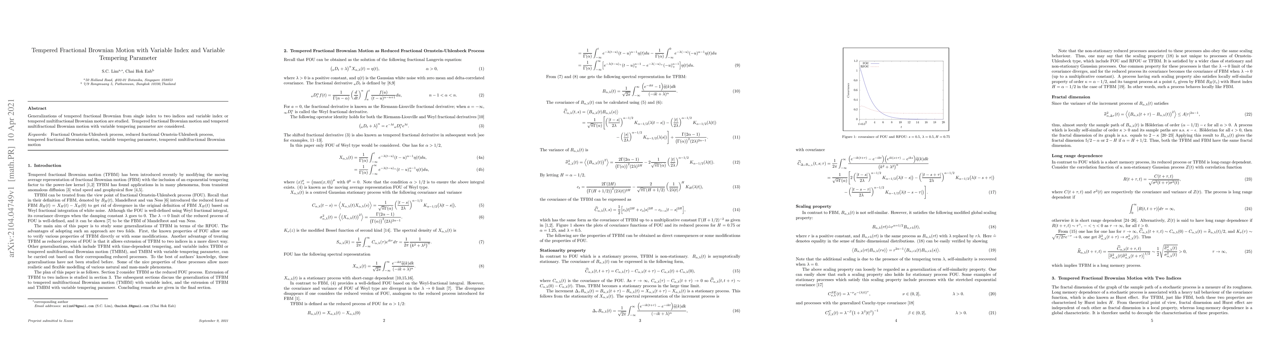 Summary: The paper explores the generalization of tempered fractional Brownian motion to include two indices and variable tempering parameters, introducing the concept of tempered multifractional Brownian motion with variable indices and parameters. This study extends the understanding of fractional processes with variable tempering.