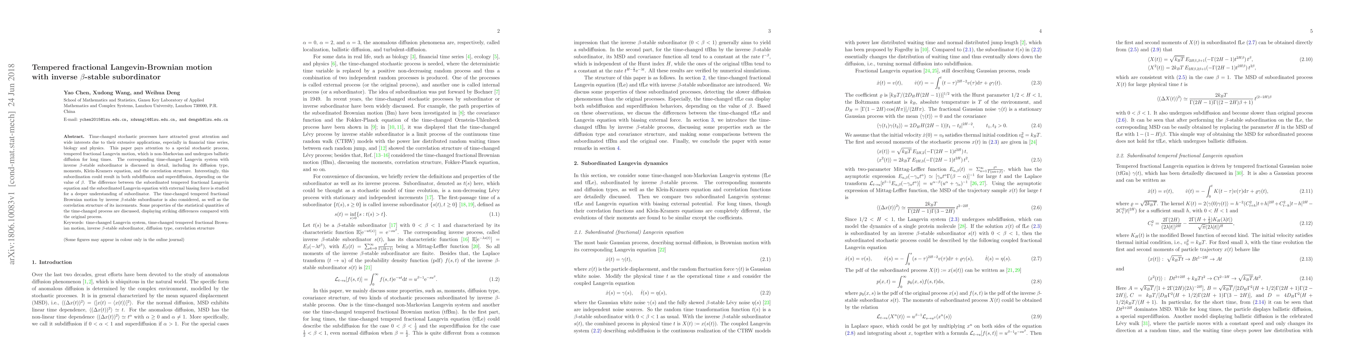 This paper investigates the tempered fractional Langevin motion time-changed by an inverse $\beta$-stable subordinator, exploring its diffusion type, moments, and correlation structure. It highlights the potential for both subdiffusion and superdiffusion based on $\beta$ values, and compares it with the traditional Langevin equation.