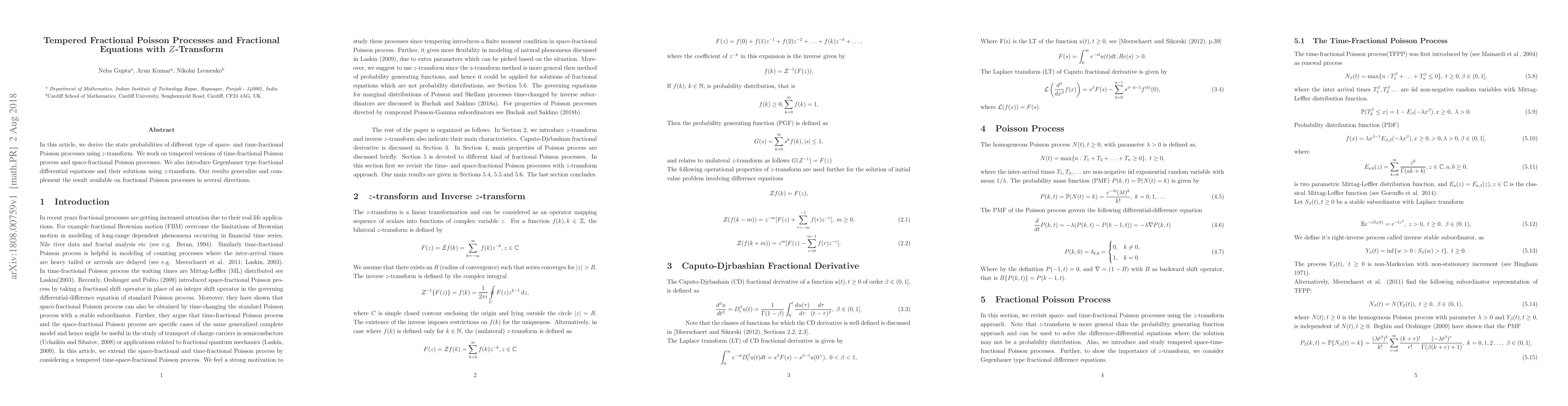 In this article, we derive the state probabilities of different type of space- and time-fractional Poisson processes using z-transform. We work on tempered versions of time-fractional Poisson process and space-fractional Poisson processes. We also introduce Gegenbauer type fractional differential equations and their solutions using z-transform. Our results generalize and complement the result available on fractional Poisson processes in several directions.