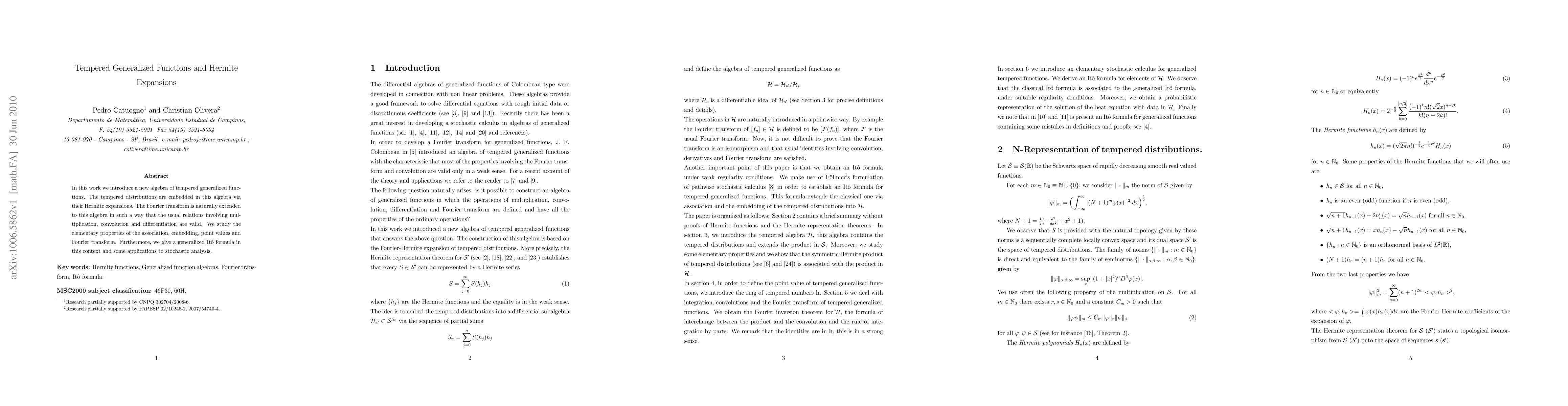 This paper introduces a new algebra of tempered generalized functions, embedding tempered distributions via Hermite expansions and extending the Fourier transform to maintain standard properties. It also presents a generalized Ito formula with applications to stochastic analysis.