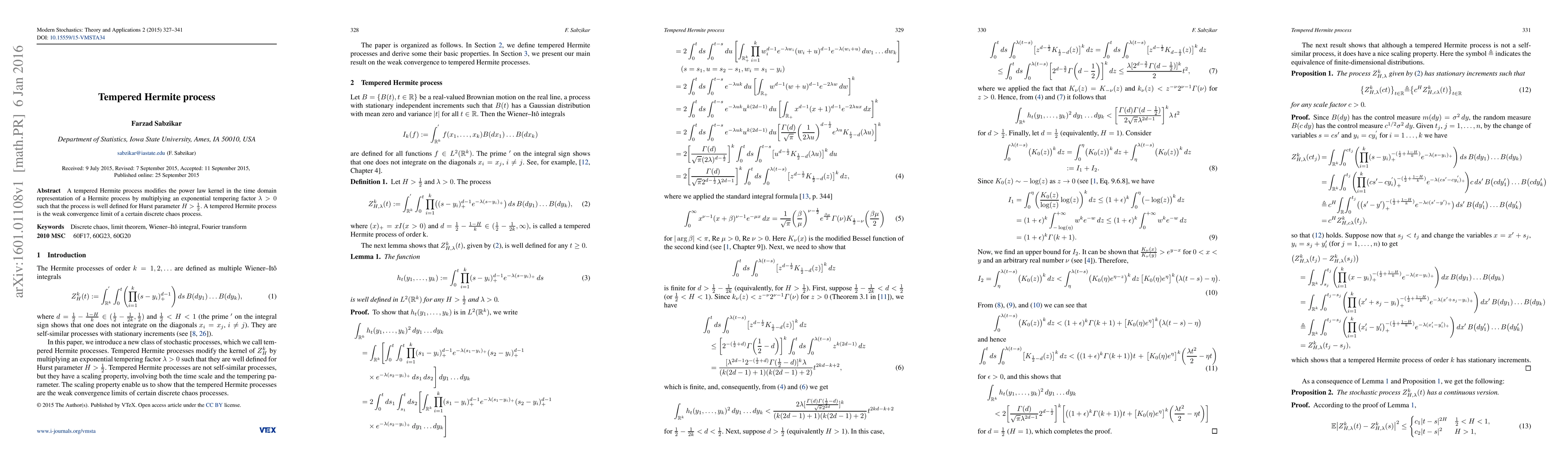 Summary: The tempered Hermite process adjusts the Hermite process's time domain kernel with an exponential factor to ensure it remains well-defined for Hurst parameters greater than 0.5, and it serves as the weak convergence limit for a specific discrete chaos process.
