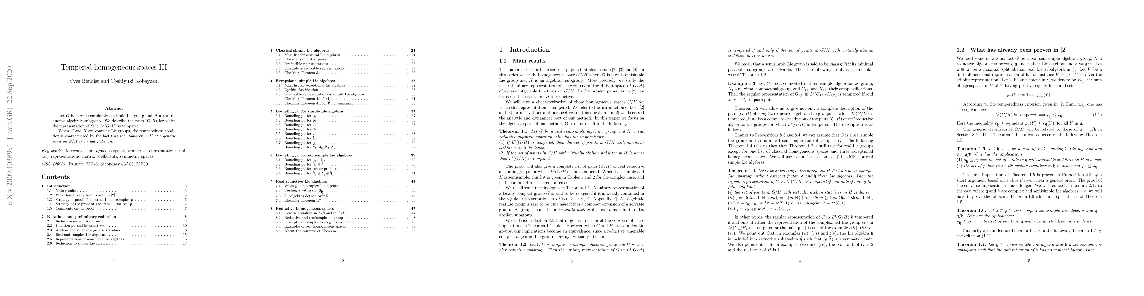 Let G be a real semisimple algebraic Lie group and H a real reductive algebraic subgroup. We describe the pairs (G,H) for which the representation of G in $L^2(G/H)$ is tempered. When G and H are complex Lie groups, the temperedness condition is characterized by the fact that the stabilizer in H of a generic point on G/H is virtually abelian.