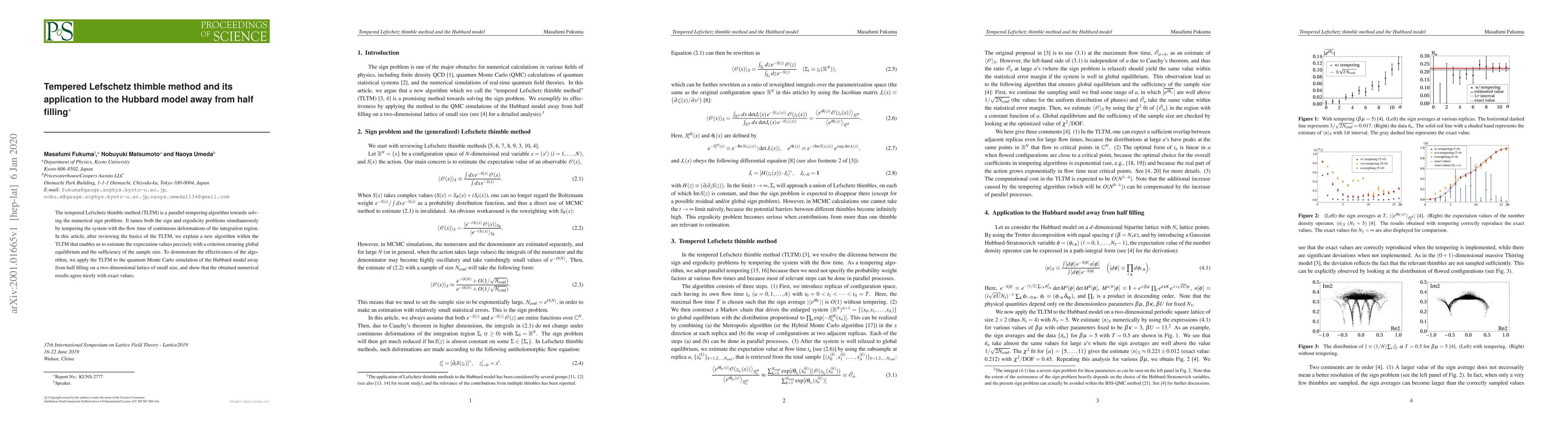 The tempered Lefschetz thimble method (TLTM) addresses the numerical sign problem by tempering the system with continuous deformations. A new TLTM algorithm ensures precise expectation value estimation and global equilibrium, which is successfully applied to the Hubbard model simulation away from half filling, yielding results consistent with exact values.