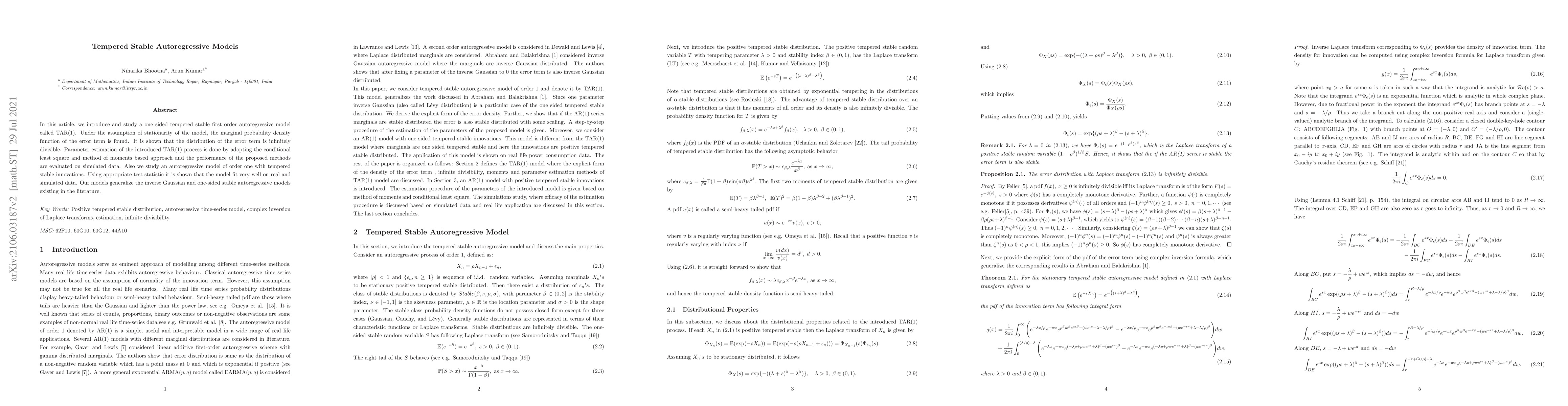 This paper introduces a one-sided tempered stable first-order autoregressive model (TAR(1)), demonstrating its infinitely divisible error term distribution. It proposes parameter estimation methods and shows the model's good fit on both real and simulated data, generalizing existing inverse Gaussian and stable autoregressive models.