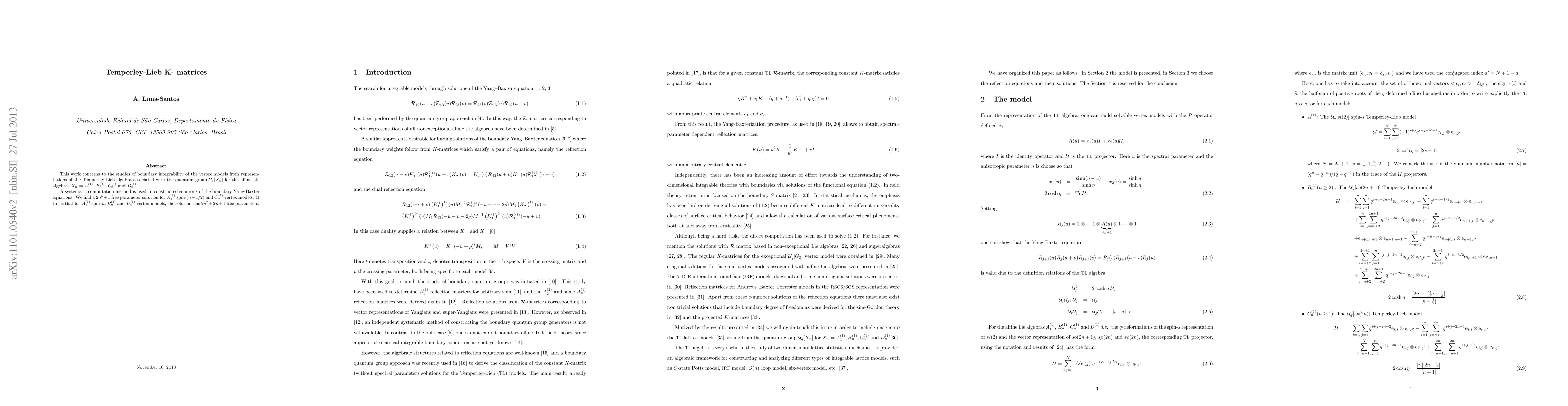 This work concerns to the studies of boundary integrability of the vertex models from representations of the Temperley-Lieb algebra associated with the quantum group ${\cal U}_{q}[X_{n}]$ for the affine Lie algebras $X_{n}$ = $A_{1}^{(1)}$, $B_{n}^{(1)}$, $C_{n}^{(1)}$ and $D_{n}^{(1)}$. A systematic computation method is used to constructed solutions of the boundary Yang-Baxter equations. We find a $2n^{2}+1$ free parameter solution for $A_{1}^{(1)} $ spin-$(n-1/2)$ and $ C_{n}^{(1)}$ vertex models. It turns that for $A_{1}^{(1)} $ spin-$n$, $ B_{n}^{(1)}$ and $D_{n}^{(1)}$ vertex models, the solution has $2n^{2}+2n+1$ free parameters.