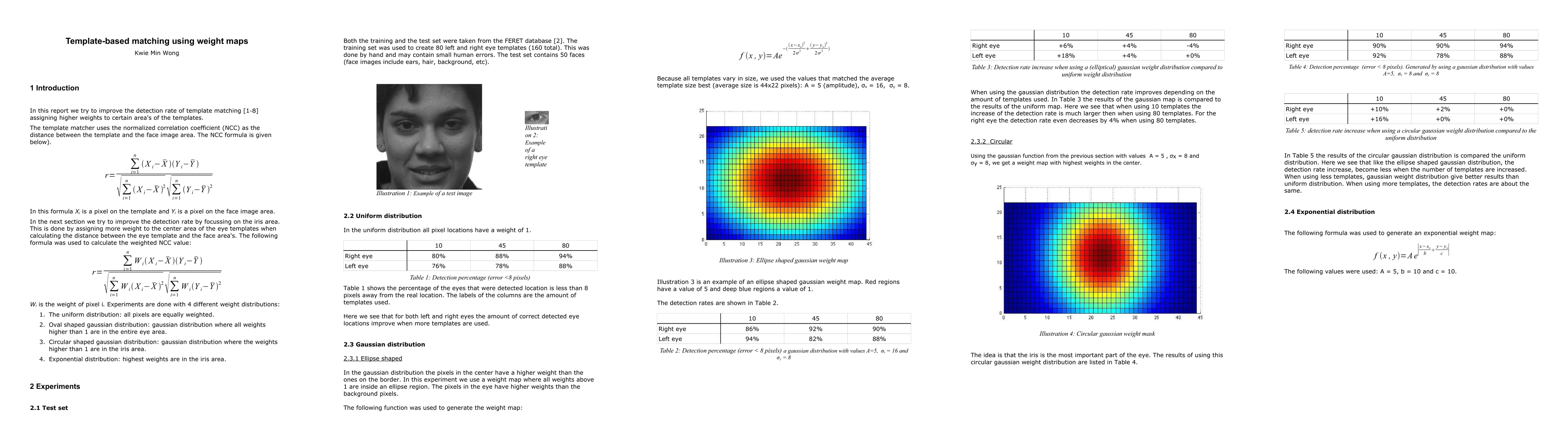 Template matching is one of the most prevalent pattern recognition methods worldwide. It has found uses in most visual concept detection fields. In this work, we investigate methods for improving template matching by adjusting the weights of different regions of the template. We compare several weight maps and test the methods using the FERET face test set in the context of human eye detection.
