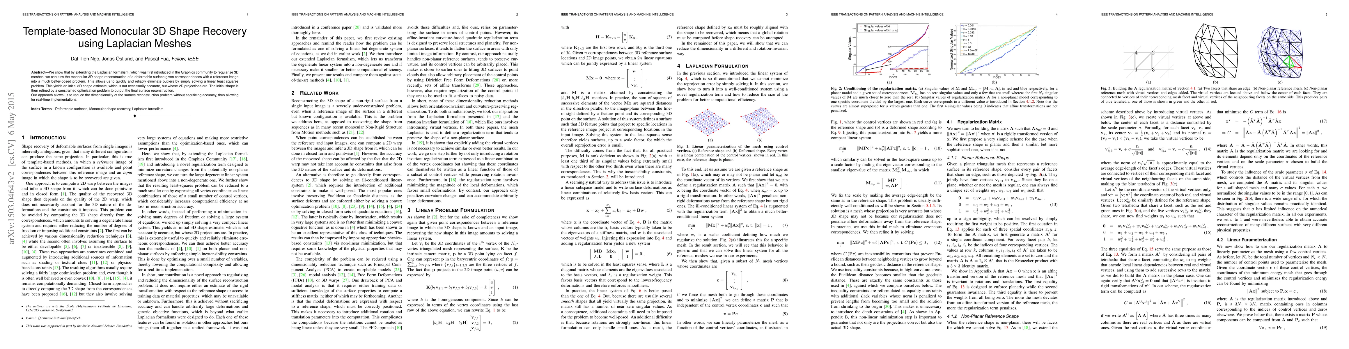 This paper presents a method for 3D shape recovery from a single image using Laplacian meshes, transforming the problem into a well-defined linear least squares issue, followed by refinement through constrained optimization, achieving real-time reconstruction without compromising accuracy.