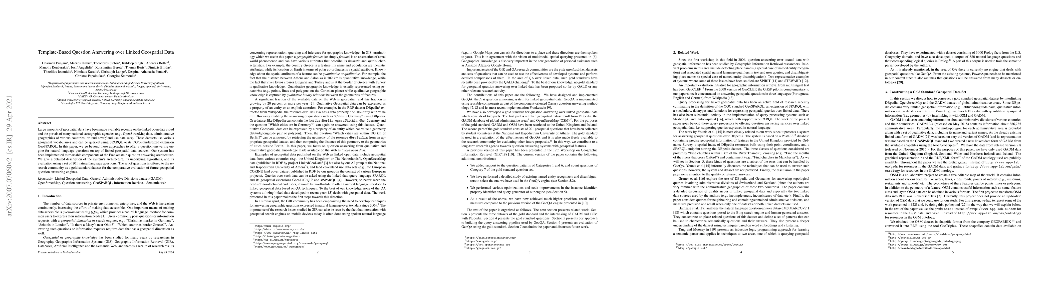 A new question-answering system has been developed to answer natural language questions on top of linked geospatial data sources, improving upon existing approaches for querying geospatial vocabularies via SPARQL or GeoSPARQL.