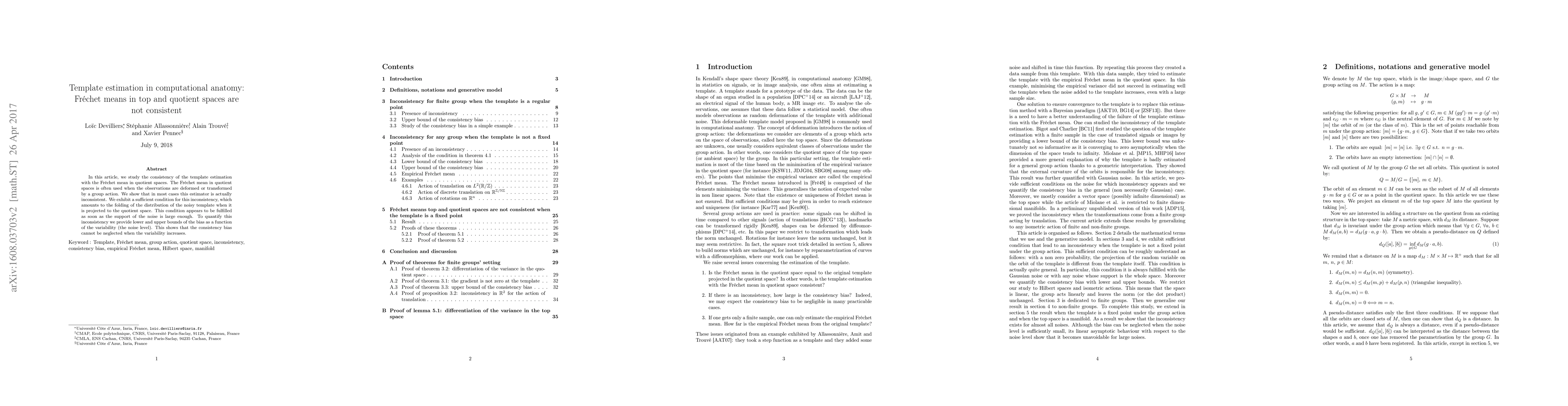 A research paper finds that a statistical method called Fréchet mean in quotient spaces is often inconsistent when estimating templates in computational anatomy, especially with high variability or noise levels.