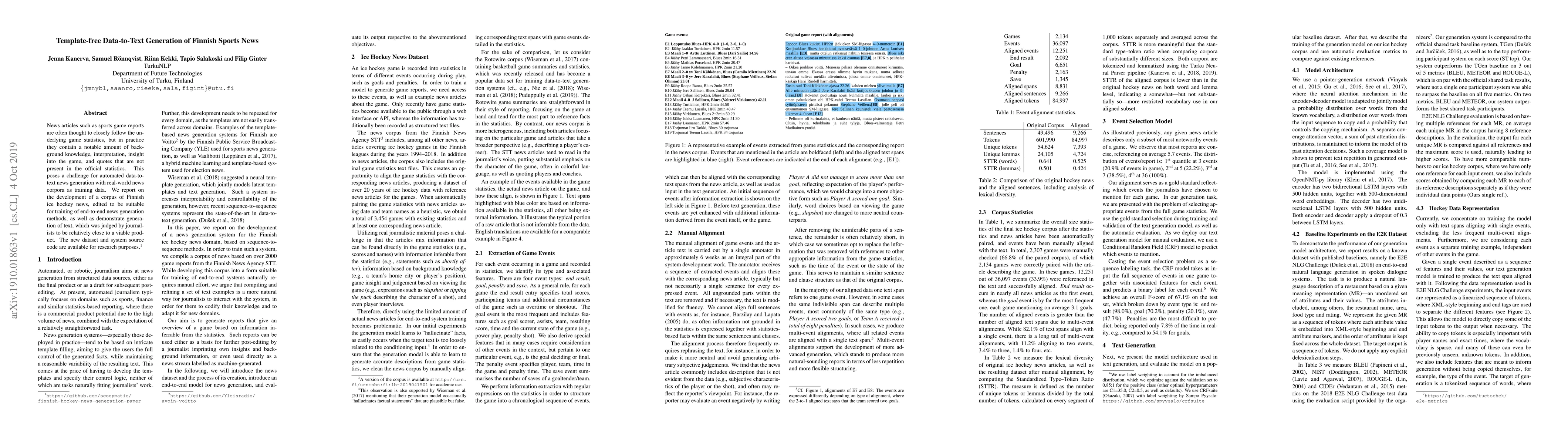 This paper develops a dataset of Finnish ice hockey news for training automated data-to-text generation models, addressing the challenge of incorporating background knowledge and insights beyond raw statistics. The resulting system generated text that journalists found close to a viable product.