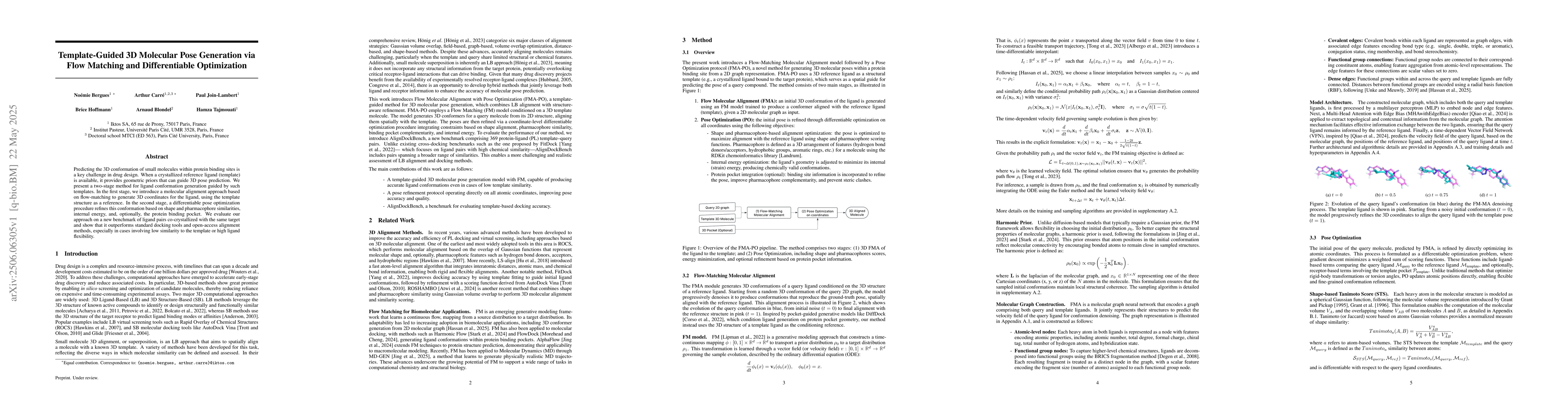Predicting the 3D conformation of small molecules within protein binding sites is a key challenge in drug design. When a crystallized reference ligand (template) is available, it provides geometric priors that can guide 3D pose prediction. We present a two-stage method for ligand conformation generation guided by such templates. In the first stage, we introduce a molecular alignment approach based on flow-matching to generate 3D coordinates for the ligand, using the template structure as a reference. In the second stage, a differentiable pose optimization procedure refines this conformation based on shape and pharmacophore similarities, internal energy, and, optionally, the protein binding pocket. We evaluate our approach on a new benchmark of ligand pairs co-crystallized with the same target and show that it outperforms standard docking tools and open-access alignment methods, especially in cases involving low similarity to the template or high ligand flexibility.