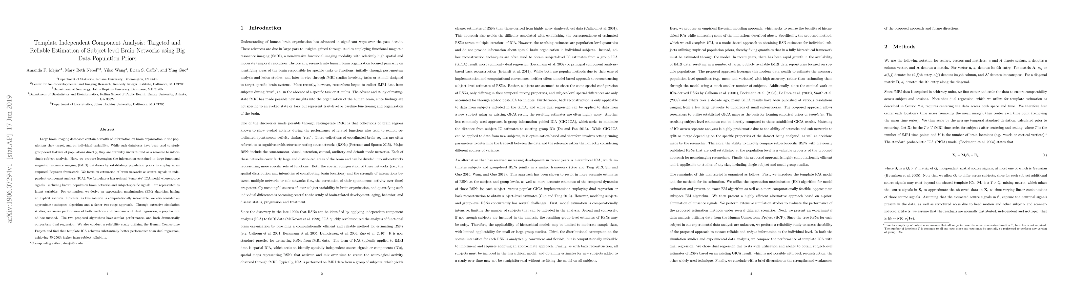 This paper proposes a template independent component analysis (ICA) model using large fMRI databases to inform single-subject brain network estimation. The authors develop an expectation maximization algorithm and a faster two-stage approach, which outperform the traditional dual regression method, achieving significantly higher intra-subject reliability.
