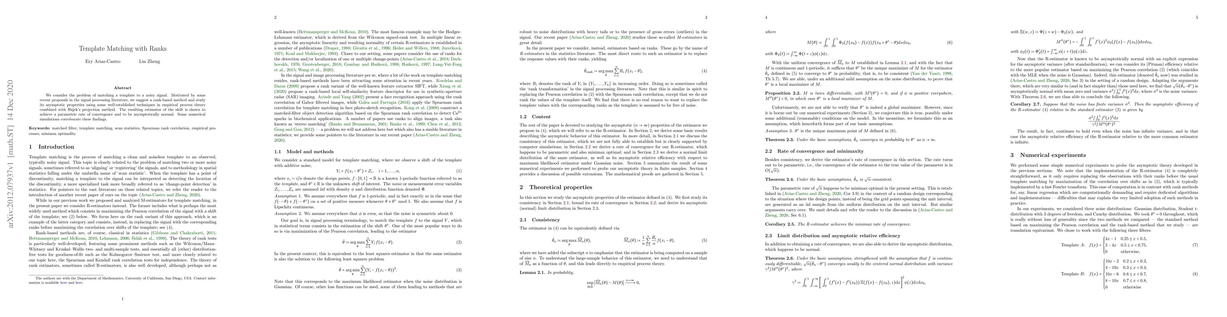 We consider the problem of matching a template to a noisy signal. Motivated by some recent proposals in the signal processing literature, we suggest a rank-based method and study its asymptotic properties using some well-established techniques in empirical process theory combined with H\'ajek's projection method. The resulting estimator of the shift is shown to achieve a parametric rate of convergence and to be asymptotically normal. Some numerical simulations corroborate these findings.