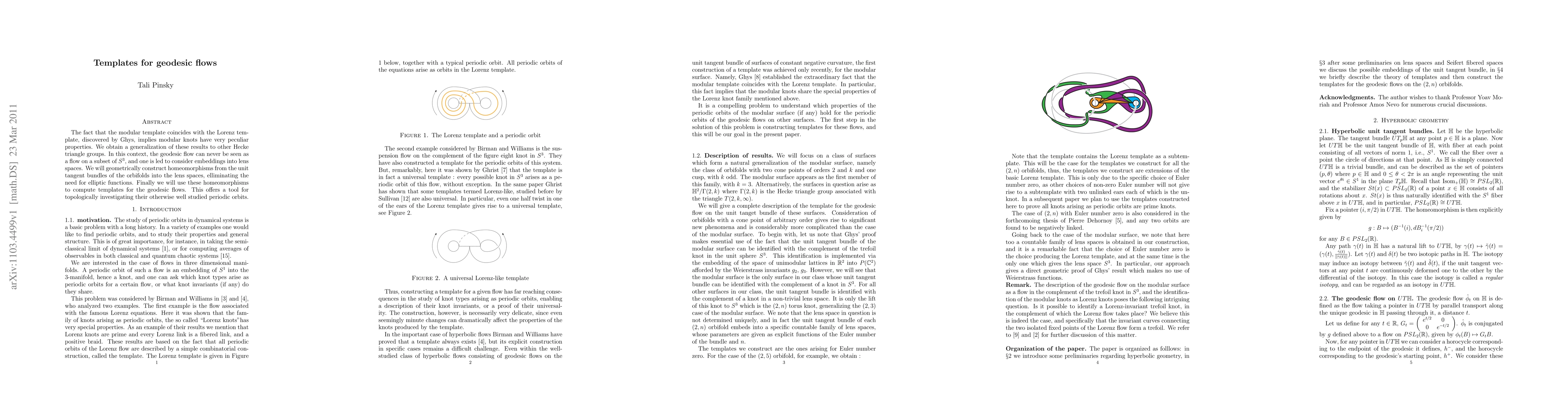 The fact that the modular template coincides with the Lorenz template, discovered by Ghys, implies modular knots have very peculiar properties. We obtain a generalization of these results to other Hecke triangle groups. In this context, the geodesic flow can never be seen as a flow on a subset of $S^3$, and one is led to consider embeddings into lens spaces. We will geometrically construct homeomorphisms from the unit tangent bundles of the orbifolds into the lens spaces, elliminating the need for elliptic functions. Finally we will use these homeomorphisms to compute templates for the geodesic flows. This offers a tool for topologically investigating their otherwise well studied periodic orbits.