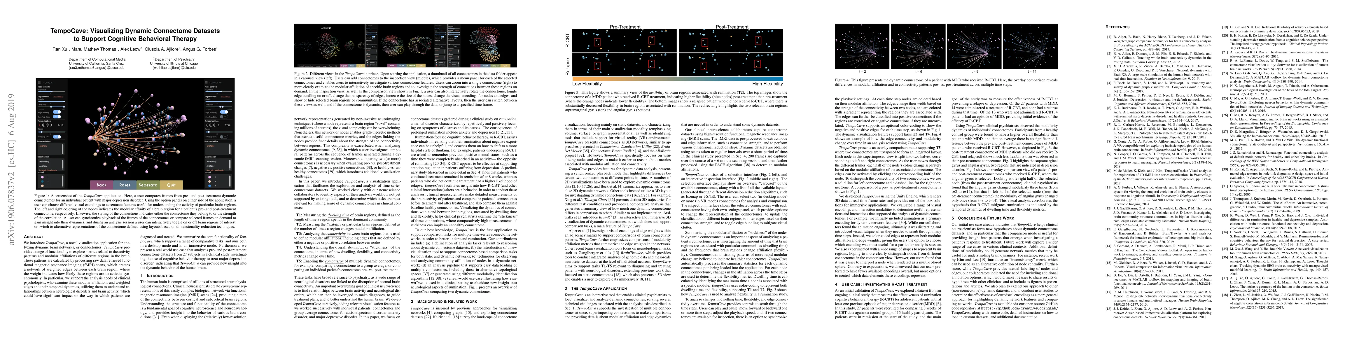 TempoCave is a visualization tool for dynamic brain network analysis, aiding clinical psychologists in understanding neurological disorders through fMRI data. It supports comparative tasks and immersive analysis, demonstrating its utility in assessing cognitive behavioral therapy outcomes for major depression disorder.