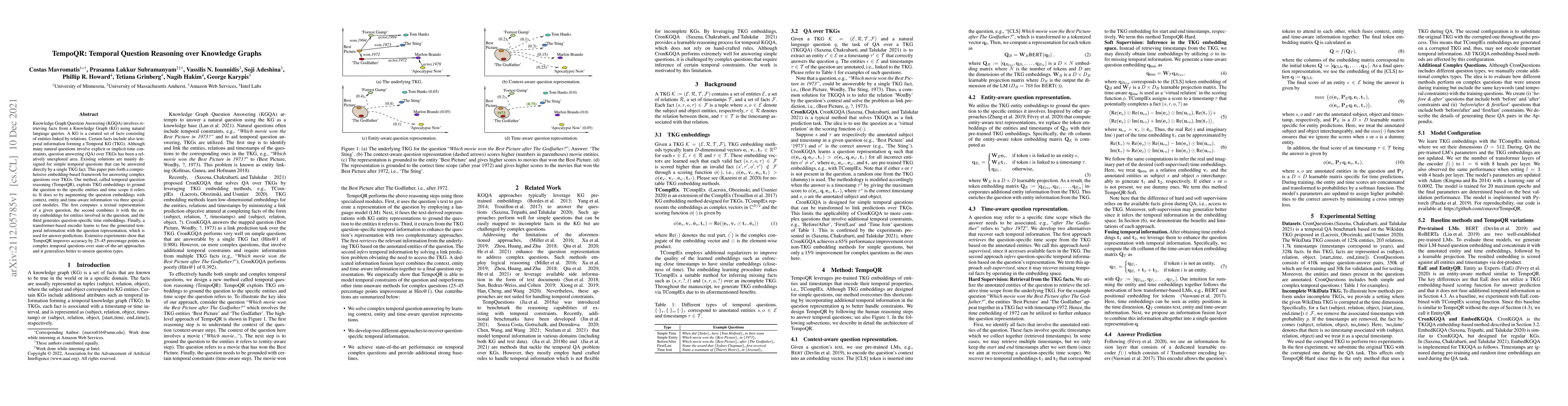 This paper introduces TempoQR, an advanced framework for answering complex temporal questions over Temporal Knowledge Graphs (TKGs) by employing TKG embeddings and specialized modules. TempoQR significantly outperforms existing methods, improving accuracy by 25-45 percentage points on complex temporal queries and demonstrating better generalization to new question types.