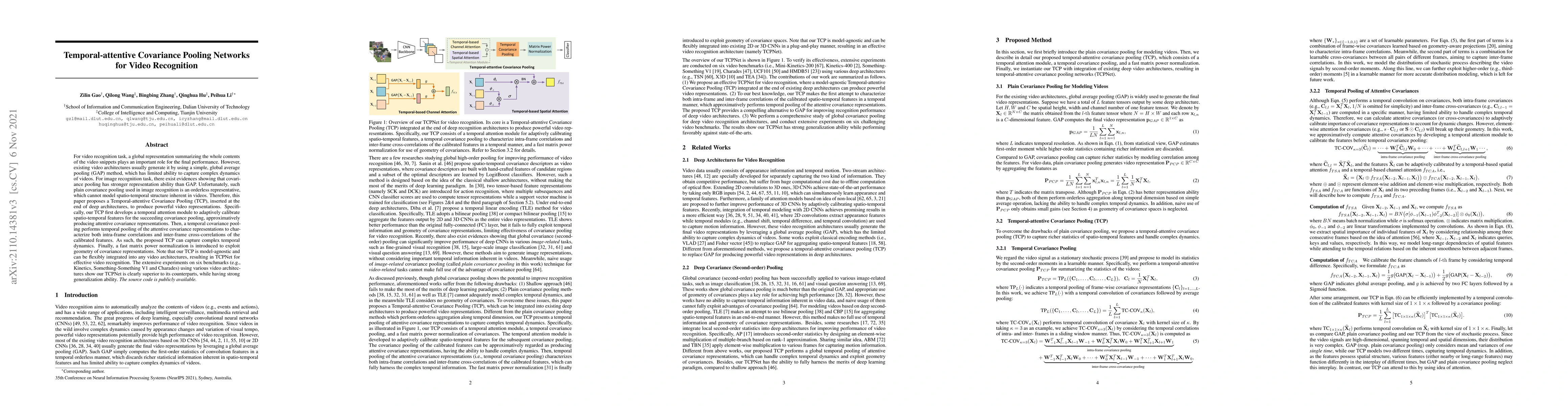 This paper proposes a Temporal-attentive Covariance Pooling (TCP) network to enhance video recognition by generating powerful video representations. TCP integrates a temporal attention module and a temporal covariance pooling to capture complex temporal dynamics, outperforming traditional global average pooling methods.