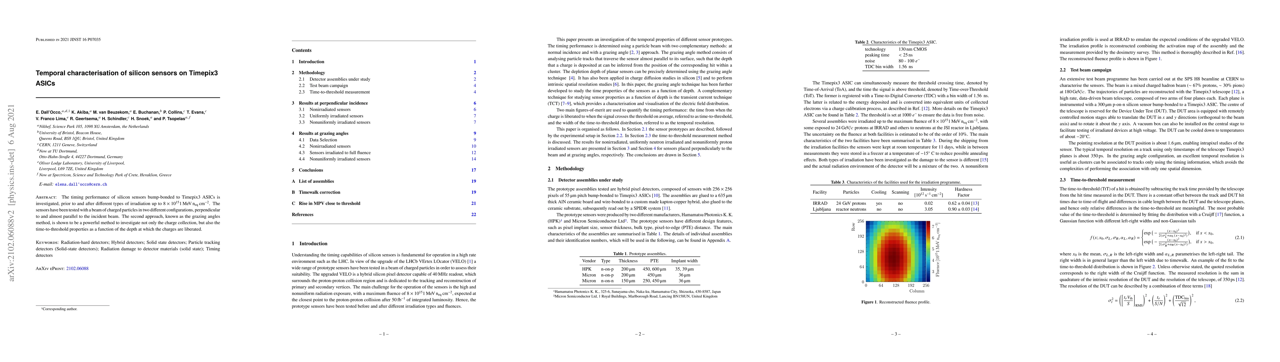 The timing performance of silicon sensors bump-bonded to Timepix3 ASICs is investigated, prior to and after different types of irradiation up to $8 \times 10^{15} 1 \mathrm{\,Me\kern -0.1em V} \mathrm{ \,n_{eq}} {\mathrm{ \,cm}}^{-2}$. The sensors have been tested with a beam of charged particles in two different configurations, perpendicular to and almost parallel to the incident beam. The second approach, known as the grazing angles method, is shown to be a powerful method to investigate not only the charge collection, but also the time-to-threshold properties as a function of the depth at which the charges are liberated.