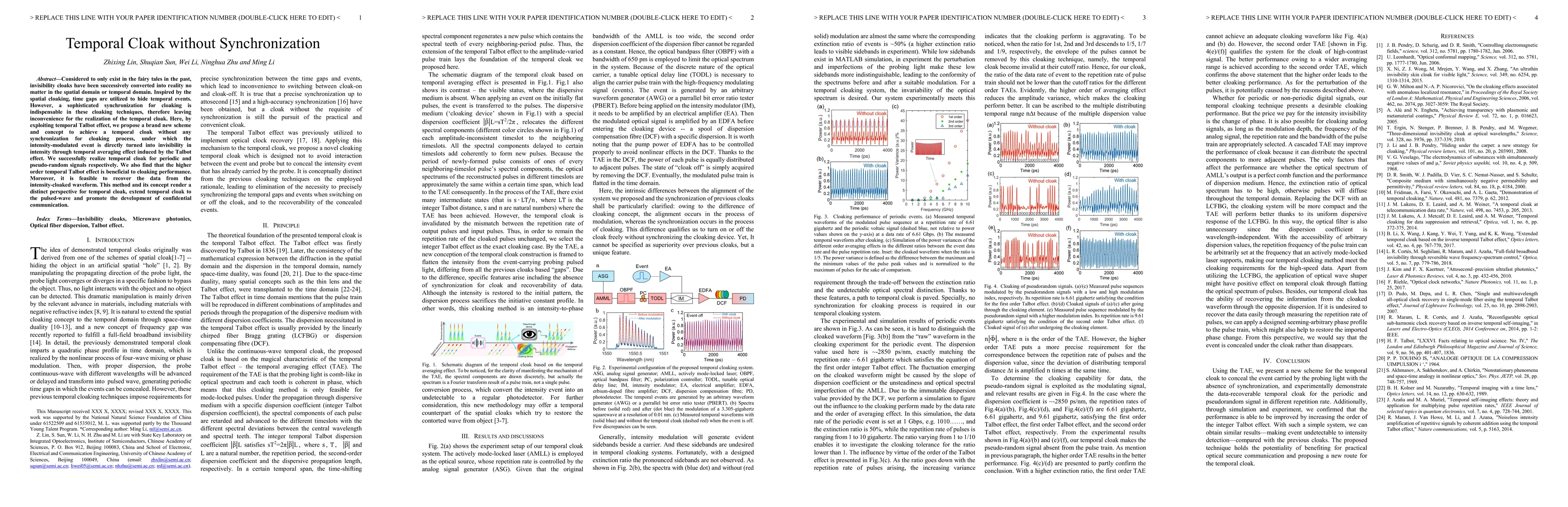 Researchers propose a new method to create a temporal cloak without synchronization, leveraging the temporal Talbot effect to hide intensity-modulated events through temporal averaging. This breakthrough enables secure confidential communication and holds promise for future developments in this field.