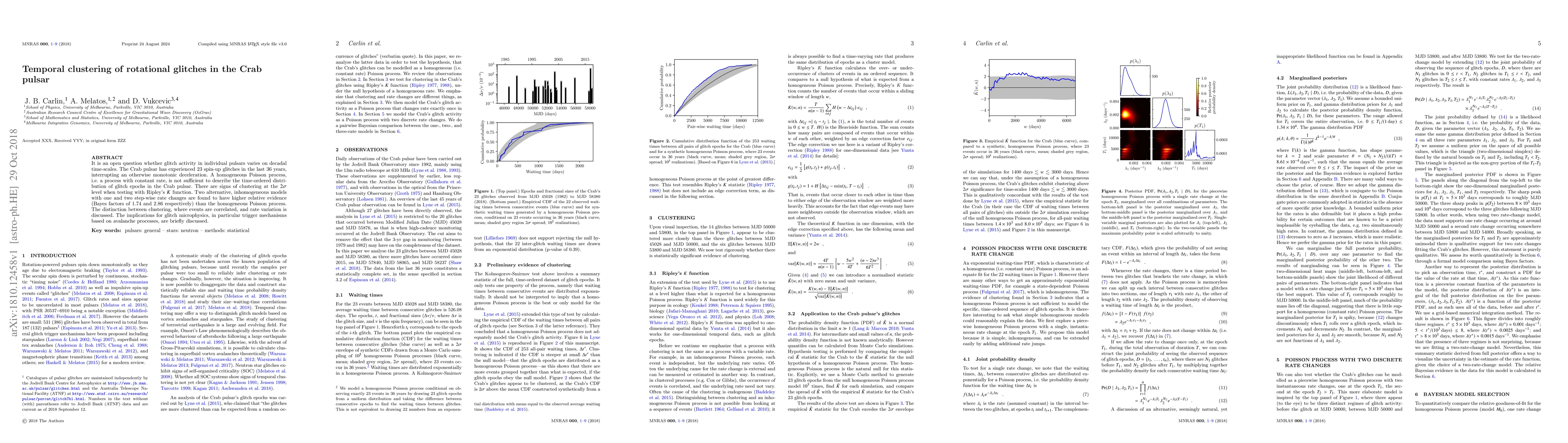 This paper investigates the temporal distribution of spin-up glitches in the Crab pulsar, finding that a homogeneous Poisson process does not adequately describe the observed clustering of glitches. Instead, inhomogeneous models with step-wise rate changes provide better fits, suggesting potential variations in glitch activity over time and implications for the underlying mechanisms of glitch generation.