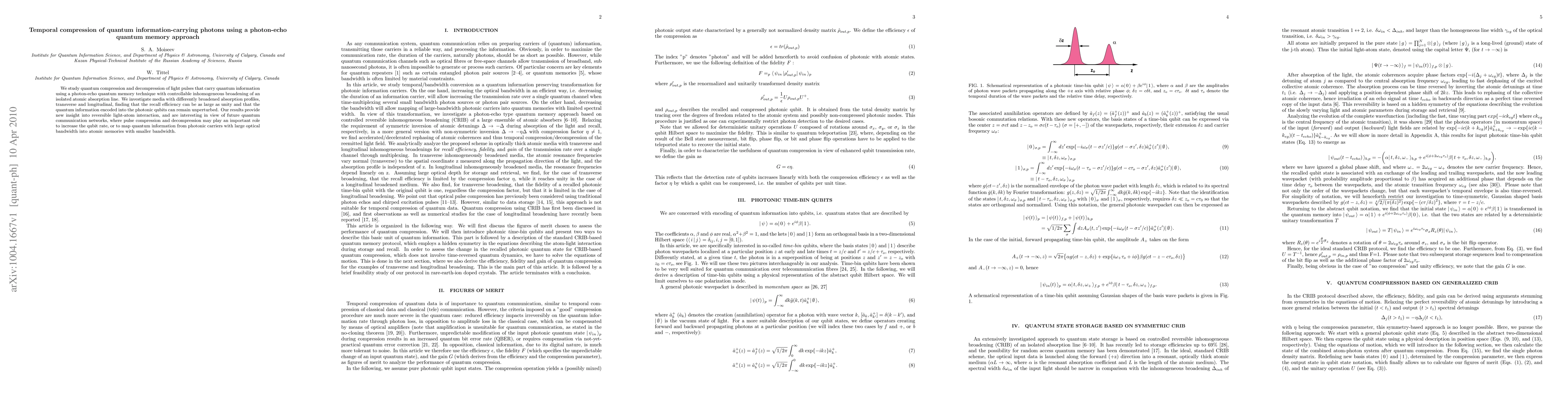 Researchers developed a method to compress and decompress quantum information in photons using a technique called photon-echo quantum memory, achieving high recall efficiency of up to unity and preserving the encoded qubits.