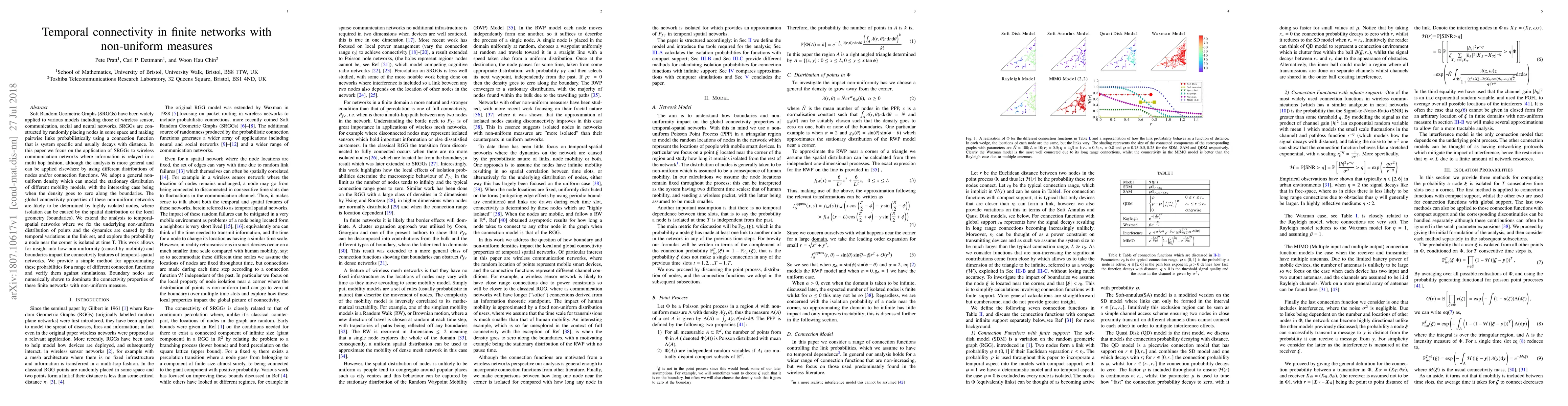 Soft Random Geometric Graphs (SRGGs) have been widely applied to various models including those of wireless sensor, communication, social and neural networks. SRGGs are constructed by randomly placing nodes in some space and making pairwise links probabilistically using a connection function that is system specific and usually decays with distance. In this paper we focus on the application of SRGGs to wireless communication networks where information is relayed in a multi hop fashion, although the analysis is more general and can be applied elsewhere by using different distributions of nodes and/or connection functions. We adopt a general non-uniform density which can model the stationary distribution of different mobility models, with the interesting case being when the density goes to zero along the boundaries. The global connectivity properties of these non-uniform networks are likely to be determined by highly isolated nodes, where isolation can be caused by the spatial distribution or the local geometry (boundaries). We extend the analysis to temporal-spatial networks where we fix the underlying non-uniform distribution of points and the dynamics are caused by the temporal variations in the link set, and explore the probability a node near the corner is isolated at time $T$. This work allows for insight into how non-uniformity (caused by mobility) and boundaries impact the connectivity features of temporal-spatial networks. We provide a simple method for approximating these probabilities for a range of different connection functions and verify them against simulations. Boundary nodes are numerically shown to dominate the connectivity properties of these finite networks with non-uniform measure.