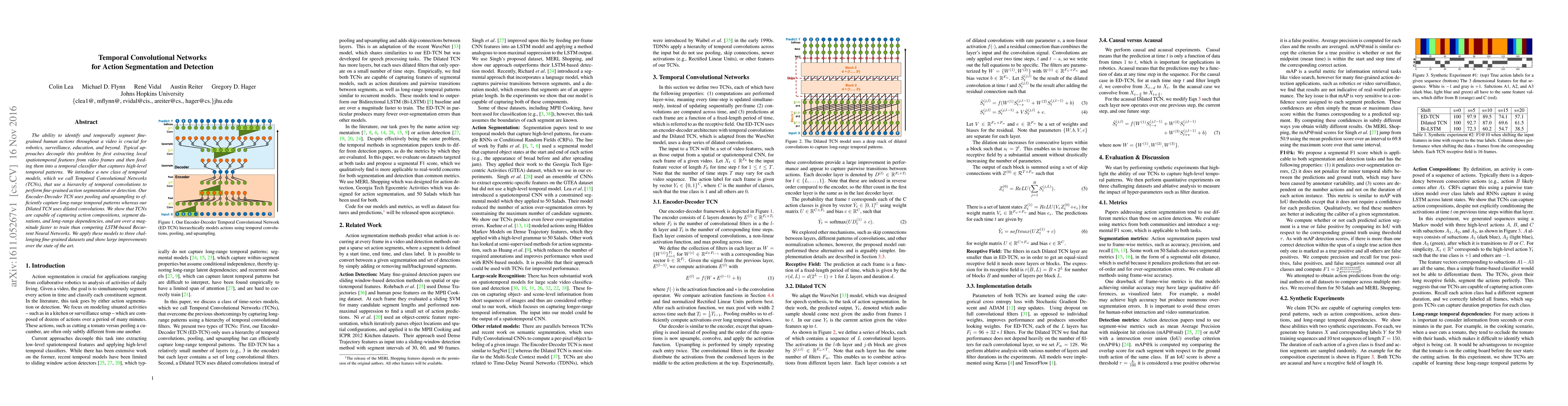 Temporal Convolutional Networks (TCNs) improve action segmentation and detection in videos by capturing long-range temporal patterns, outperforming traditional LSTM-based approaches with significant speed gains.