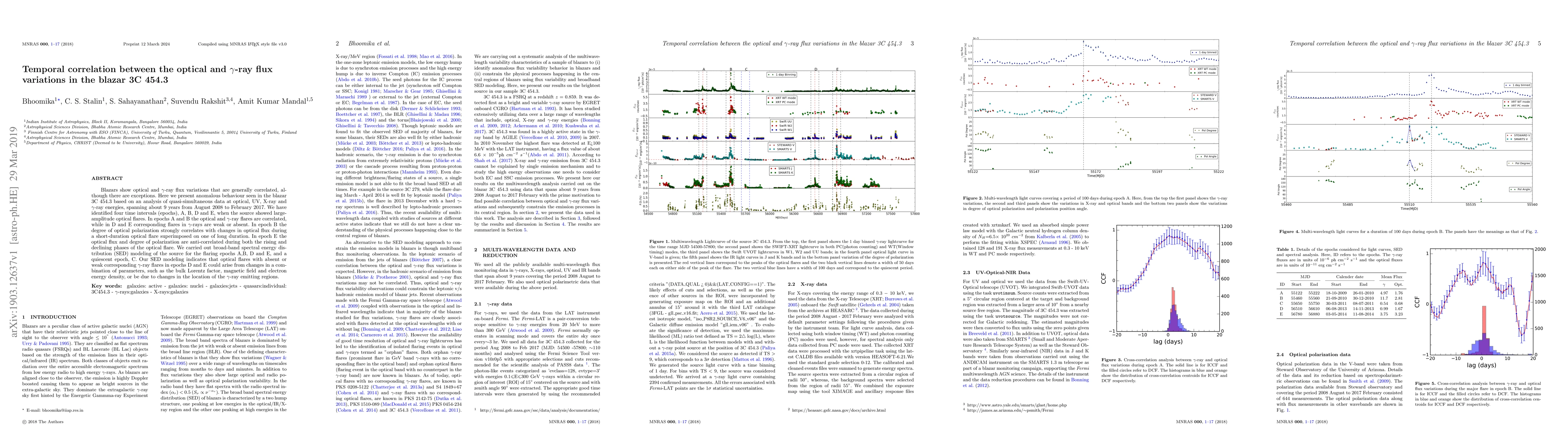 Researchers analyzed 9 years of data from blazar 3C 454.3, finding four anomalous time intervals where optical and gamma-ray fluxes showed different patterns, with some flares occurring without corresponding gamma-ray activity.