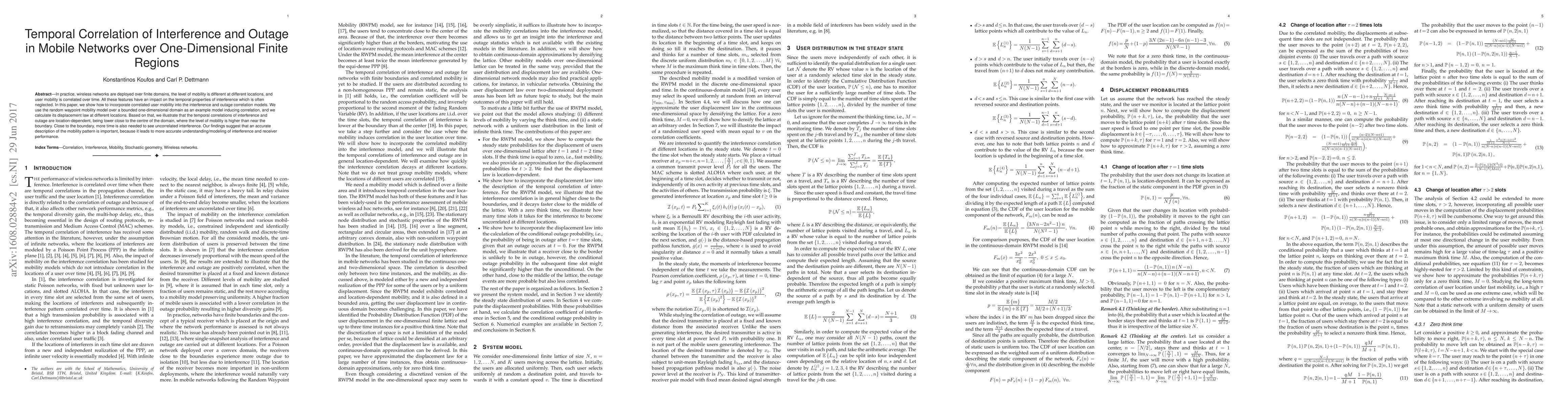 In practice, wireless networks are deployed over finite domains, the level of mobility is different at different locations, and user mobility is correlated over time. All these features have an impact on the temporal properties of interference which is often neglected. In this paper, we show how to incorporate correlated user mobility into the interference and outage correlation models. We use the random waypoint mobility model over a bounded one-dimensional domain as an example model inducing correlation, and we calculate its displacement law at different locations. Based on that, we illustrate that the temporal correlations of interference and outage are location-dependent, being lower close to the centre of the domain, where the level of mobility is higher than near the boundary. Close to the boundary, more time is also needed to see uncorrelated interference. Our findings suggest that an accurate description of the mobility pattern is important, because it leads to more accurate understanding/modeling of interference and receiver performance.