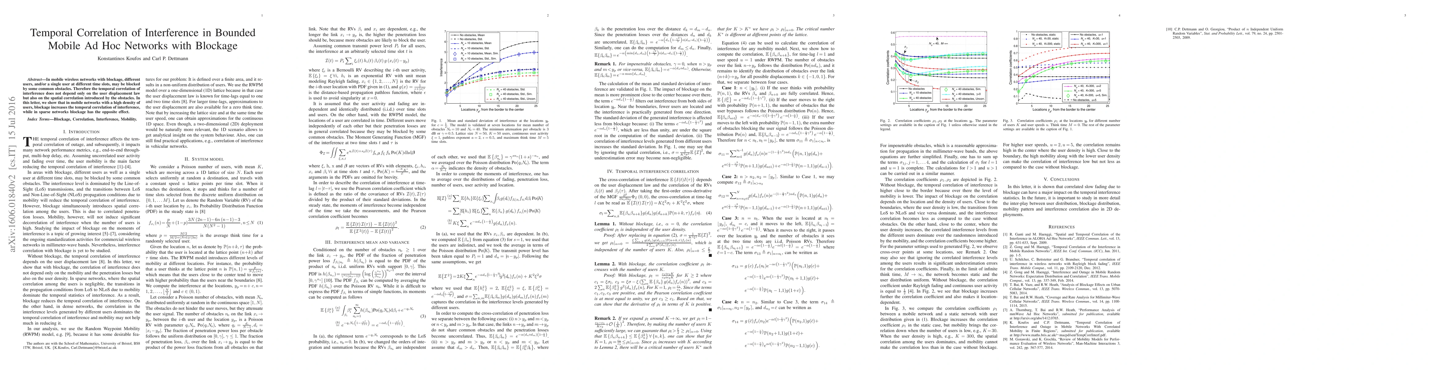 This paper investigates how blockage affects the temporal correlation of interference in mobile ad hoc networks. It finds that in high-density networks, blockage enhances interference correlation, whereas in sparse networks, it reduces it due to spatial correlations introduced by obstacles.