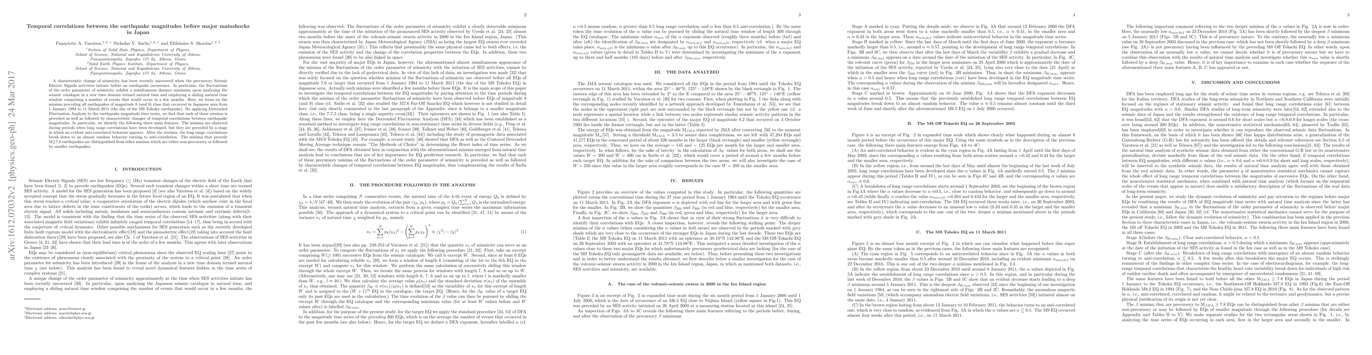 Panayiotis A. Varotsos, Nicholas V. Sarlis, Toshiyasu Nagao