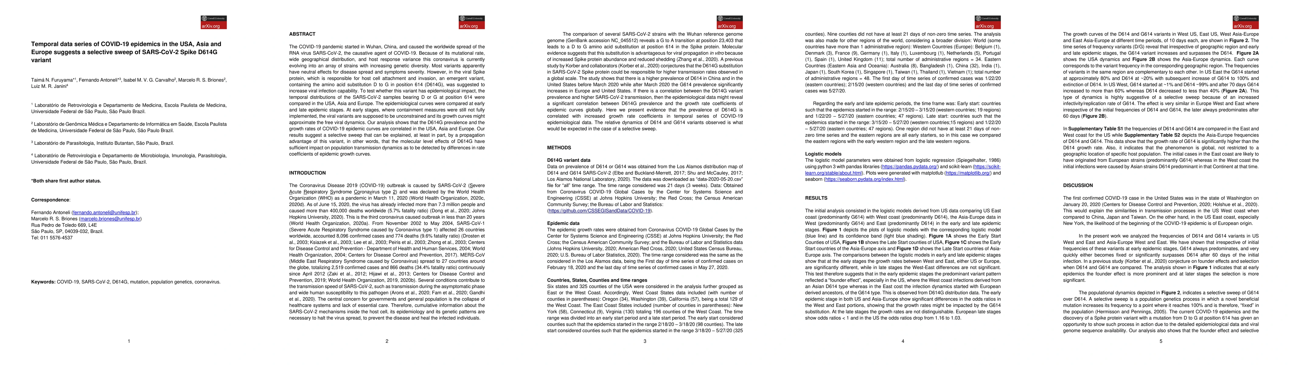The COVID-19 pandemic started in Wuhan, China, and caused the worldwide spread of the RNA virus SARS-CoV-2, the causative agent of COVID-19. Because of its mutational rate, wide geographical distribution, and host response variance this coronavirus is currently evolving into an array of strains with increasing genetic diversity. Most variants apparently have neutral effects for disease spread and symptoms severity. However, in the viral Spike protein, which is responsible for host cell attachment and invasion, an emergent variant, containing the amino acid substitution D to G in position 614 (D614G), was suggested to increase viral infection capability. To test whether this variant has epidemiological impact, the temporal distributions of the SARS-CoV-2 samples bearing D or G at position 614 were compared in the USA, Asia and Europe. The epidemiological curves were compared at early and late epidemic stages. At early stages, where containment measures were still not fully implemented, the viral variants are supposed to be unconstrained and its growth curves might approximate the free viral dynamics. Our analysis shows that the D614G prevalence and the growth rates of COVID-19 epidemic curves are correlated in the USA, Asia and Europe. Our results suggest a selective sweep that can be explained, at least in part, by a propagation advantage of this variant, in other words, that the molecular level effects of D614G have sufficient impact on population transmission dynamics as to be detected by differences in rate coefficients of epidemic growth curves.